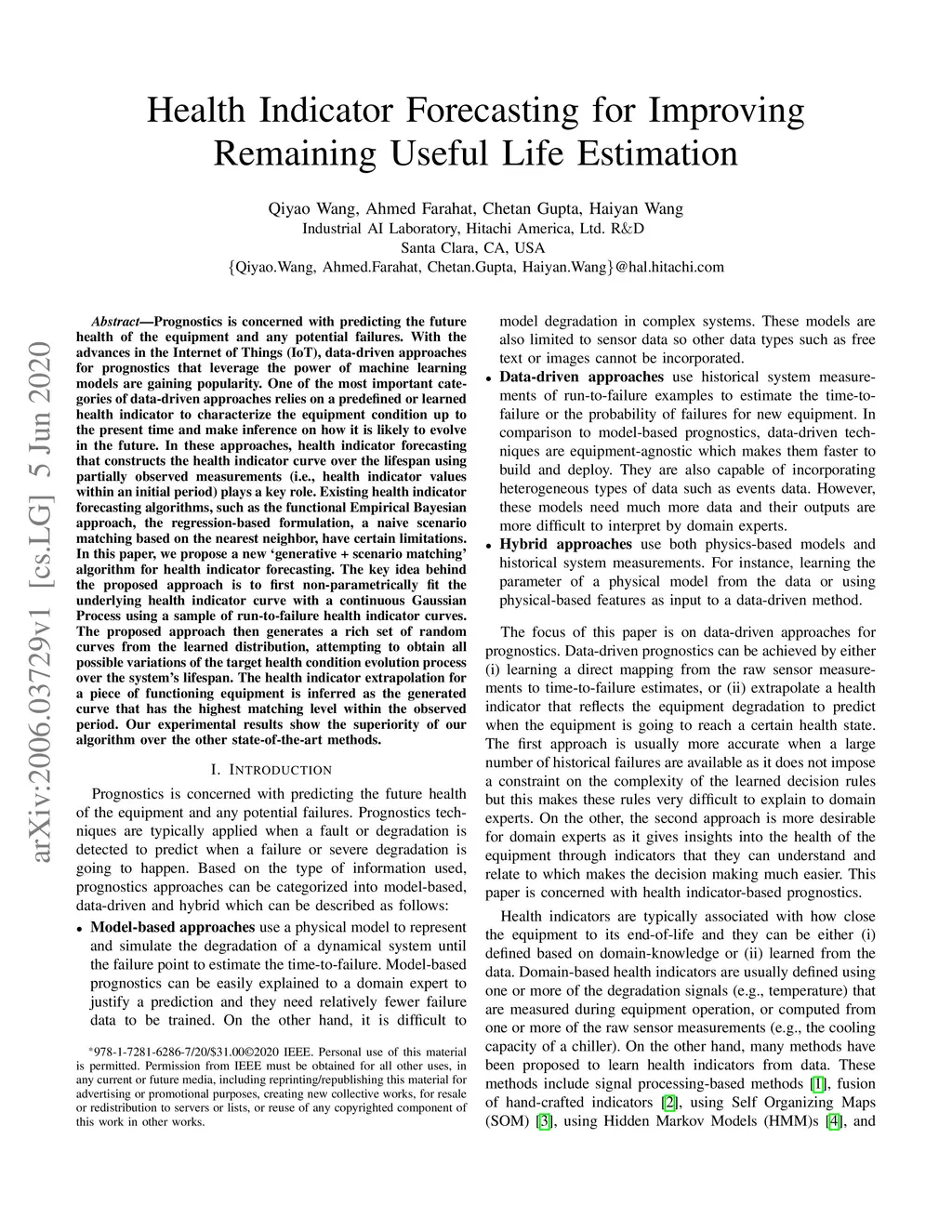 Prognostics is concerned with predicting the future health of the equipment and any potential failures. With the advances in the Internet of Things (IoT), data-driven approaches for prognostics that leverage the power of machine learning models are gaining popularity. One of the most important categories of data-driven approaches relies on a predefined or learned health indicator to characterize the equipment condition up to the present time and make inference on how it is likely to evolve in the future. In these approaches, health indicator forecasting that constructs the health indicator curve over the lifespan using partially observed measurements (i.e., health indicator values within an initial period) plays a key role. Existing health indicator forecasting algorithms, such as the functional Empirical Bayesian approach, the regression-based formulation, a naive scenario matching based on the nearest neighbor, have certain limitations. In this paper, we propose a new `generative + scenario matching' algorithm for health indicator forecasting. The key idea behind the proposed approach is to first non-parametrically fit the underlying health indicator curve with a continuous Gaussian Process using a sample of run-to-failure health indicator curves. The proposed approach then generates a rich set of random curves from the learned distribution, attempting to obtain all possible variations of the target health condition evolution process over the system's lifespan. The health indicator extrapolation for a piece of functioning equipment is inferred as the generated curve that has the highest matching level within the observed period. Our experimental results show the superiority of our algorithm over the other state-of-the-art methods.