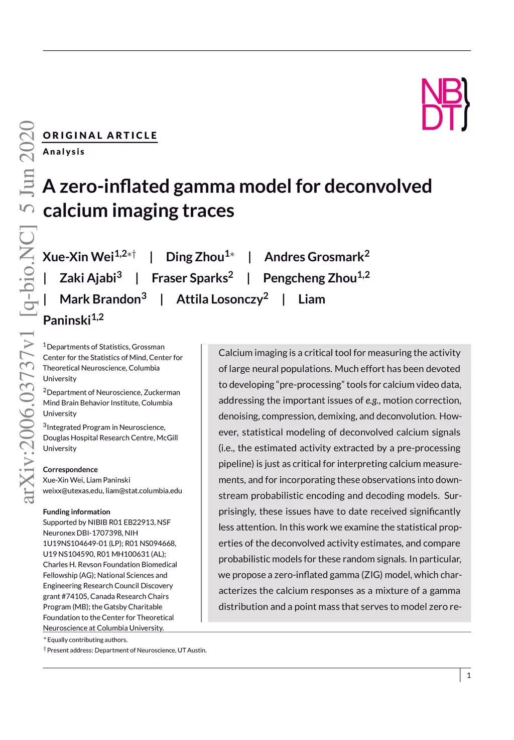 A zero-inflated gamma model for deconvolved calcium imaging traces