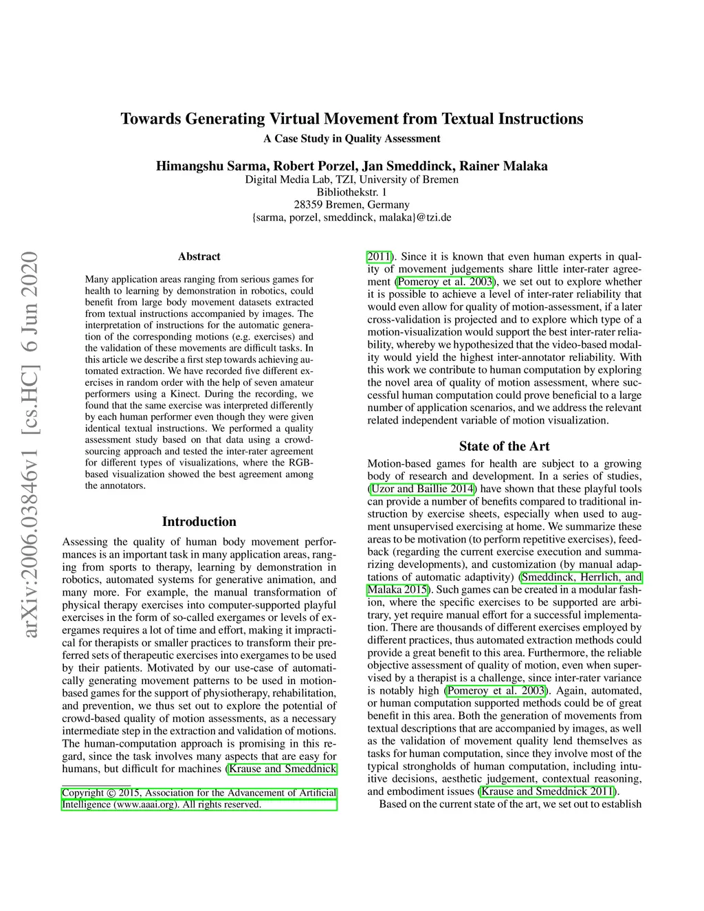 Many application areas ranging from serious games for health to learning by demonstration in robotics, could benefit from large body movement datasets extracted from textual instructions accompanied by images. The interpretation of instructions for the automatic generation of the corresponding motions (e.g. exercises) and the validation of these movements are difficult tasks. In this article we describe a first step towards achieving automated extraction. We have recorded five different exercises in random order with the help of seven amateur performers using a Kinect. During the recording, we found that the same exercise was interpreted differently by each human performer even though they were given identical textual instructions. We performed a quality assessment study based on that data using a crowdsourcing approach and tested the inter-rater agreement for different types of visualizations, where the RGBbased visualization showed the best agreement among the annotators.