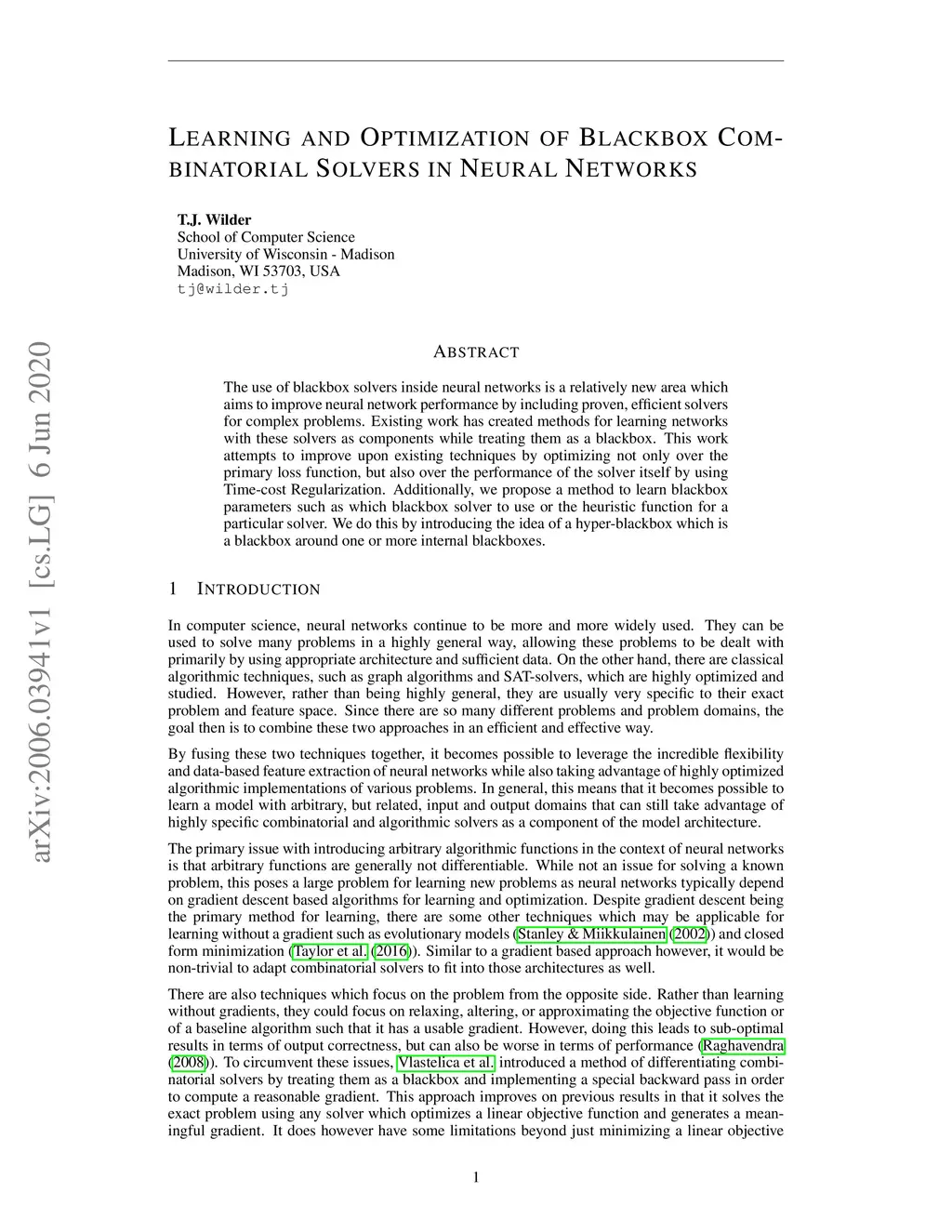 Learning and Optimization of Blackbox Combinatorial Solvers in Neural