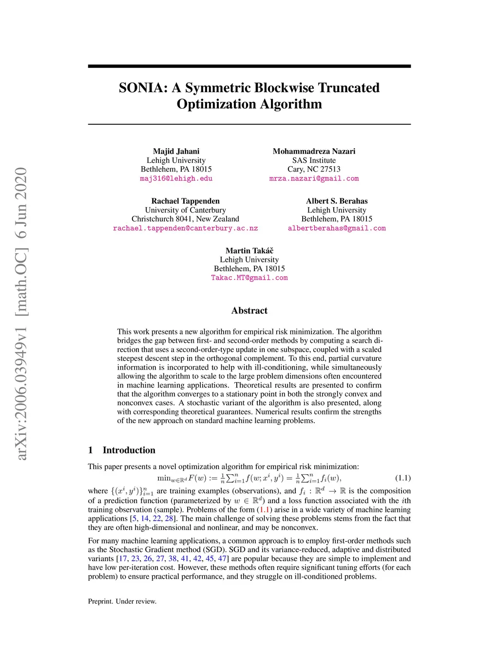 SONIA: A Symmetric Blockwise Truncated Optimization Algorithm