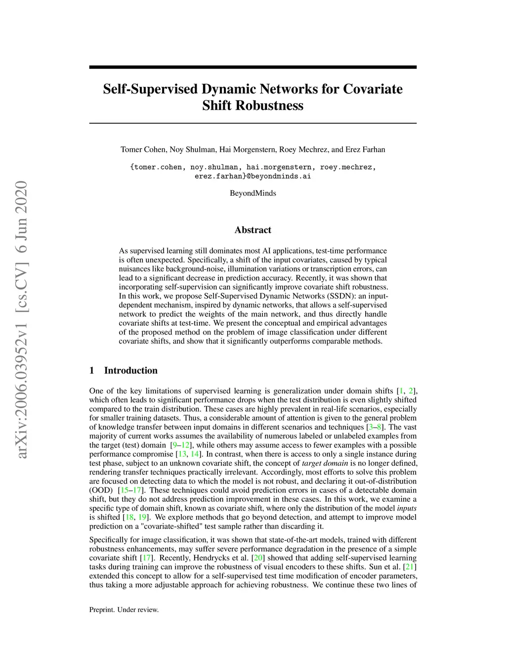 Self-Supervised Dynamic Networks for Covariate Shift Robustness