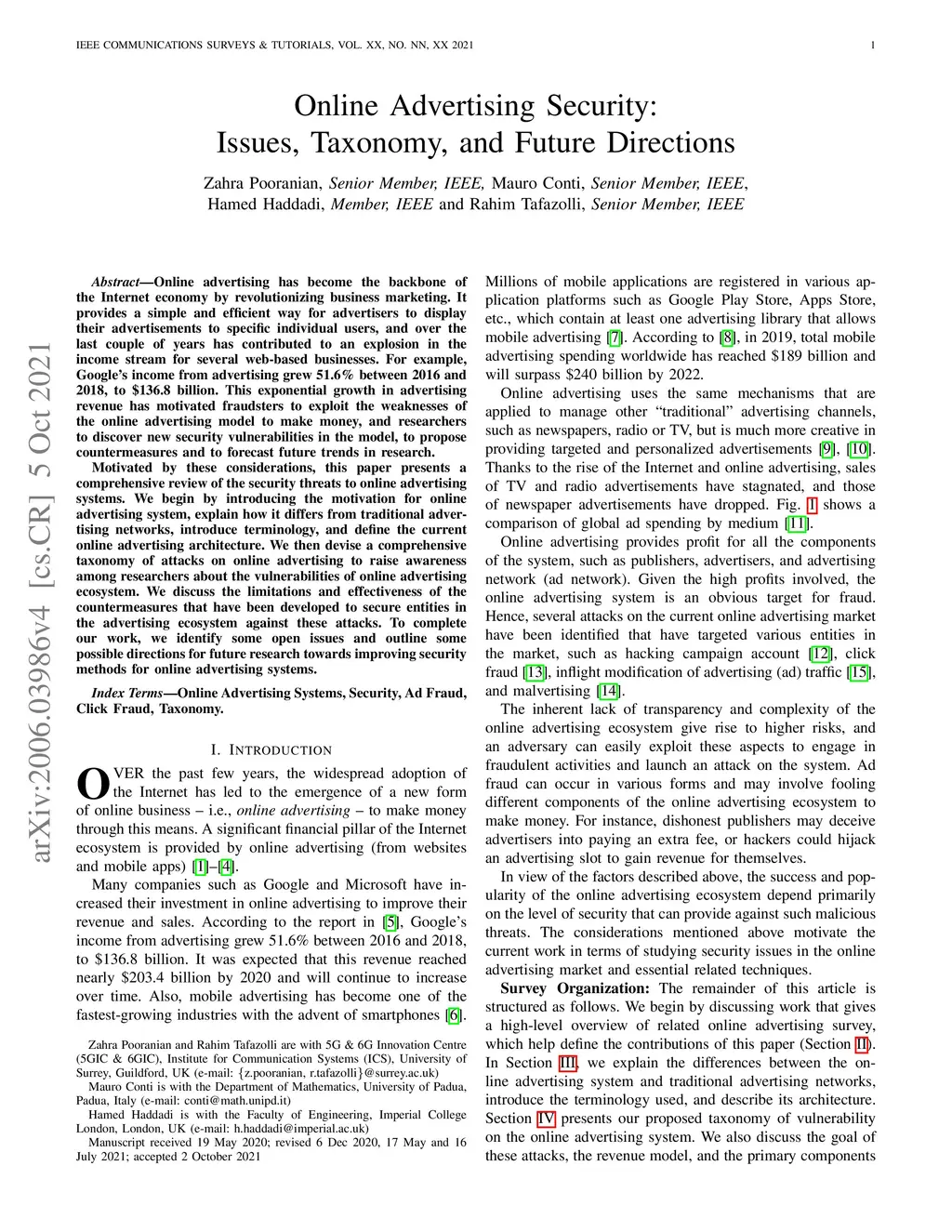 Online Advertising Security: Issues, Taxonomy, and Future Directions