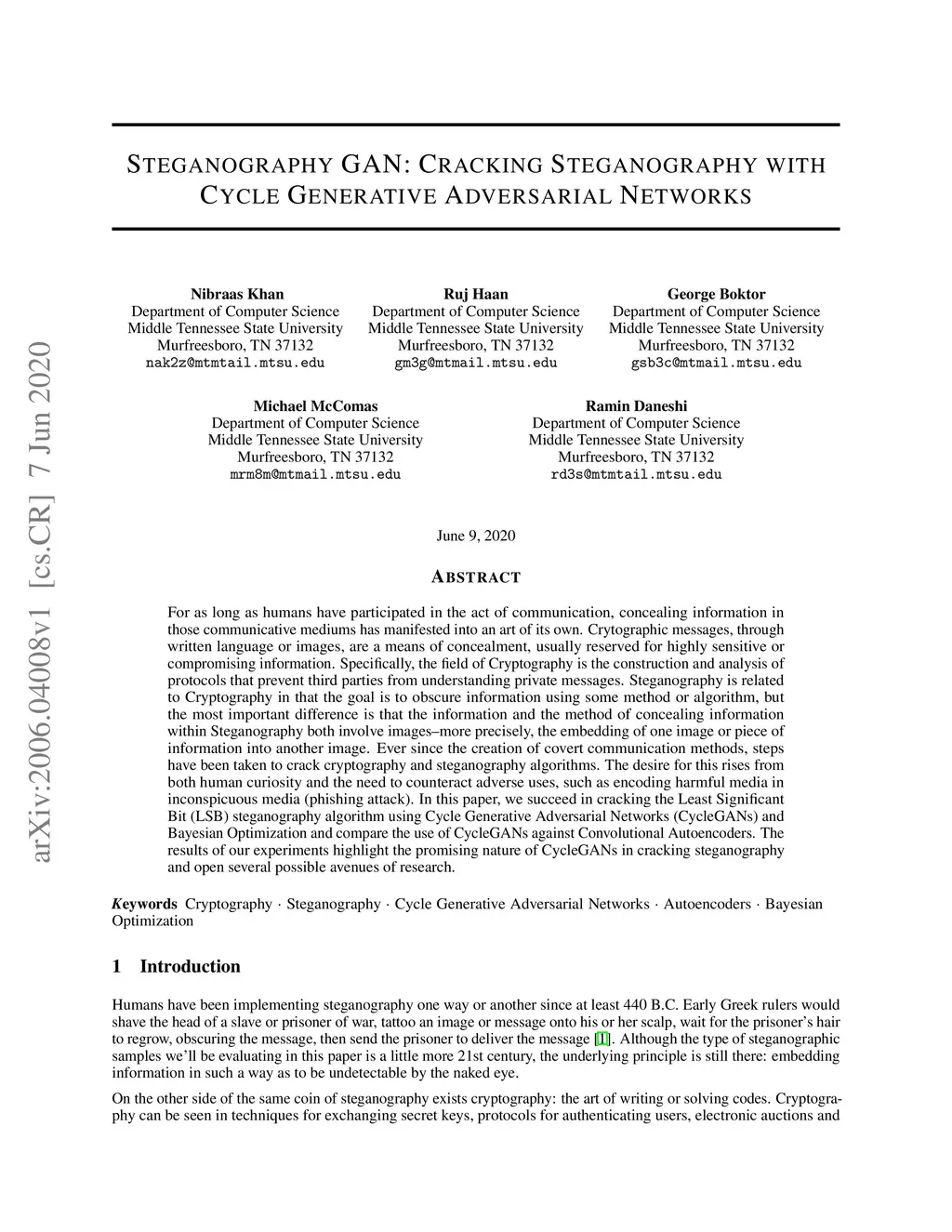 For as long as humans have participated in the act of communication, concealing information in those communicative mediums has manifested into an art of its own. Crytographic messages, through written language or images, are a means of concealment, usually reserved for highly sensitive or compromising information. Specifically, the field of Cryptography is the construction and analysis of protocols that prevent third parties from understanding private messages. Steganography is related to Cryptography in that the goal is to obscure information using some method or algorithm, but the most important difference is that the information and the method of concealing information within Steganography both involve images--more precisely, the embedding of one image or piece of information into another image. Ever since the creation of covert communication methods, steps have been taken to crack cryptography and steganography algorithms. The desire for this rises from both human curiosity and the need to counteract adverse uses, such as encoding harmful media in inconspicuous media (phishing attack). In this paper, we succeed in cracking the Least Significant Bit (LSB) steganography algorithm using Cycle Generative Adversarial Networks (CycleGANs) and Bayesian Optimization and compare the use of CycleGANs against Convolutional Autoencoders. The results of our experiments highlight the promising nature of CycleGANs in cracking steganography and open several possible avenues of research.