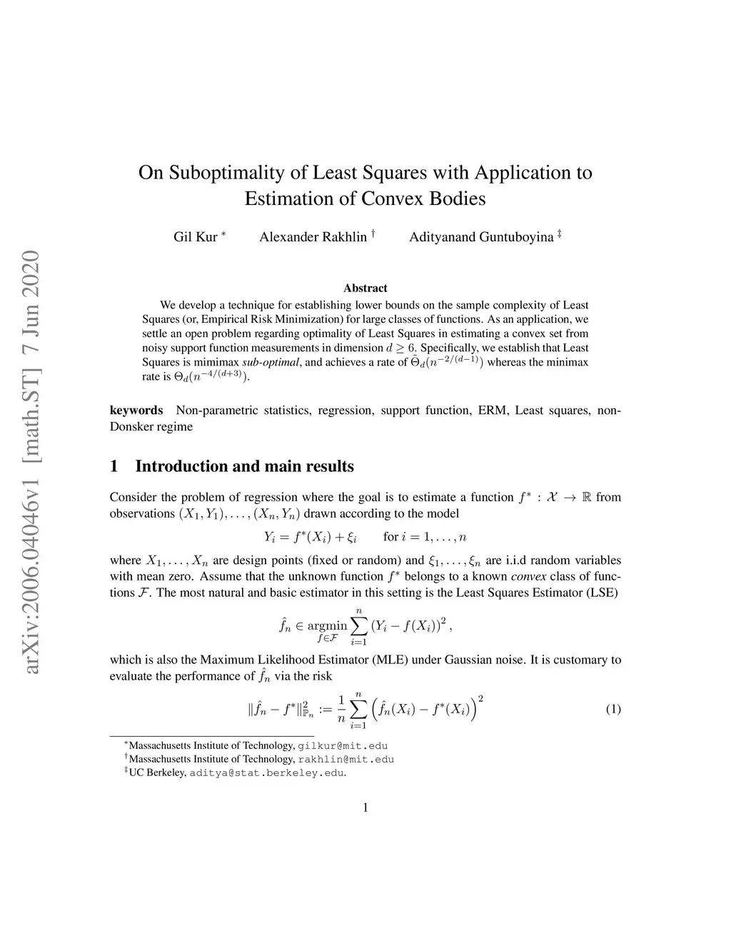 We develop a technique for establishing lower bounds on the sample complexity of Least Squares (or, Empirical Risk Minimization) for large classes of functions. As an application, we settle an open problem regarding optimality of Least Squares in estimating a convex set from noisy support function measurements in dimension . Specifically, we establish that Least Squares is mimimax sub-optimal, and achieves a rate of whereas the minimax rate is .
