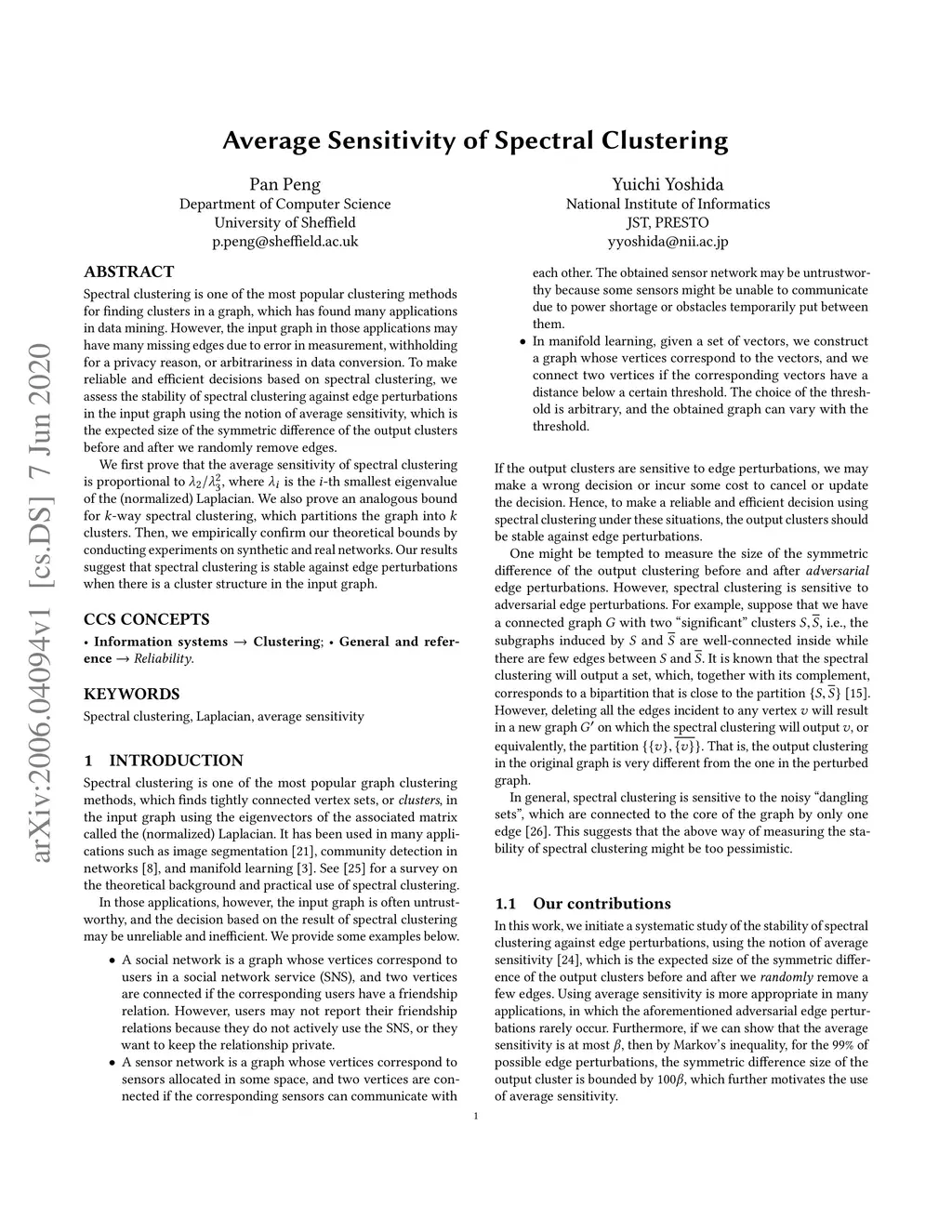 Average Sensitivity of Spectral Clustering