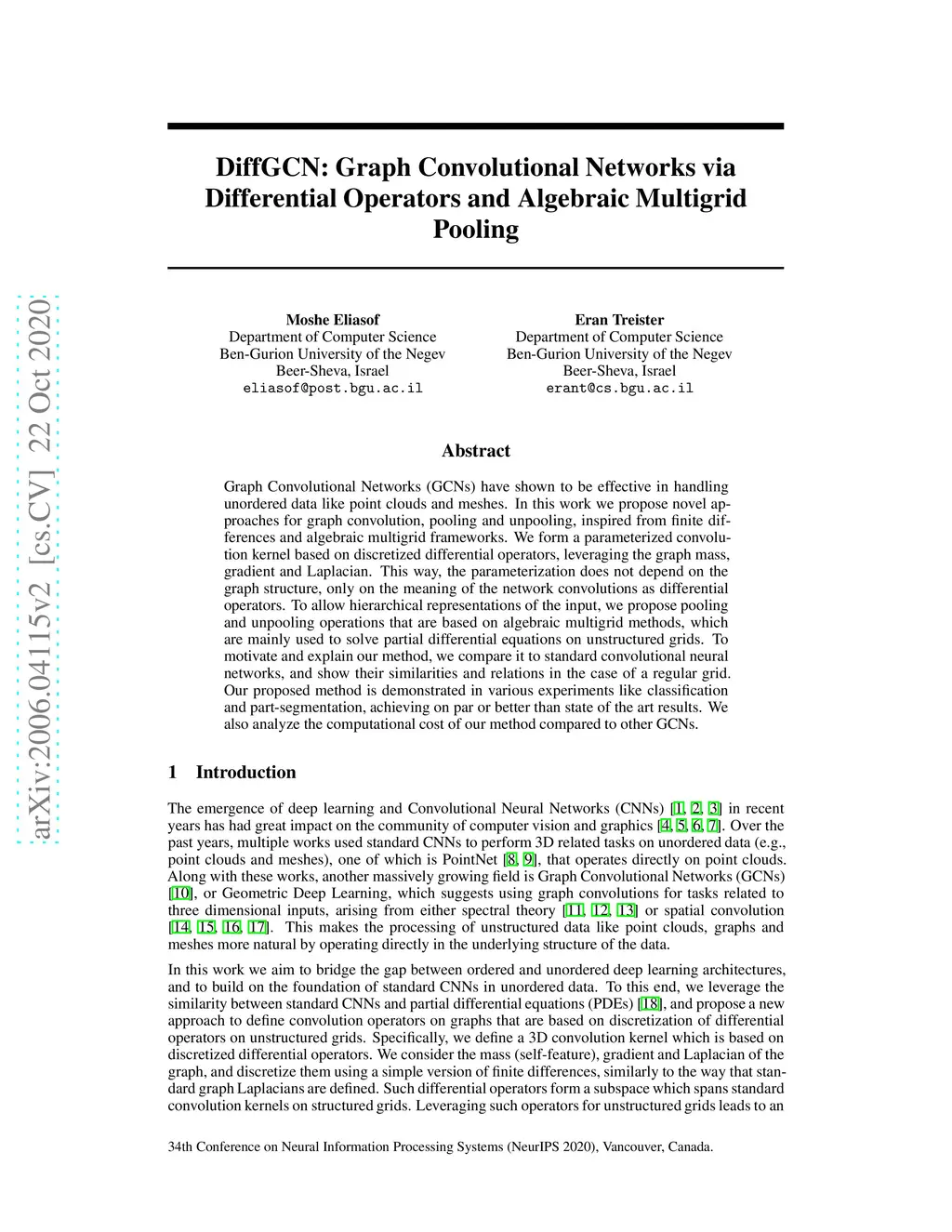 Graph Convolutional Networks (GCNs) have shown to be effective in handling unordered data like point clouds and meshes. In this work we propose novel approaches for graph convolution, pooling and unpooling, inspired from finite differences and algebraic multigrid frameworks. We form a parameterized convolution kernel based on discretized differential operators, leveraging the graph mass, gradient and Laplacian. This way, the parameterization does not depend on the graph structure, only on the meaning of the network convolutions as differential operators. To allow hierarchical representations of the input, we propose pooling and unpooling operations that are based on algebraic multigrid methods, which are mainly used to solve partial differential equations on unstructured grids. To motivate and explain our method, we compare it to standard convolutional neural networks, and show their similarities and relations in the case of a regular grid. Our proposed method is demonstrated in various experiments like classification and part-segmentation, achieving on par or better than state of the art results. We also analyze the computational cost of our method compared to other GCNs.
