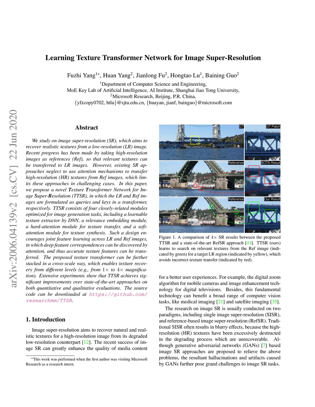 Learning Texture Transformer Network for Image Super-Resolution