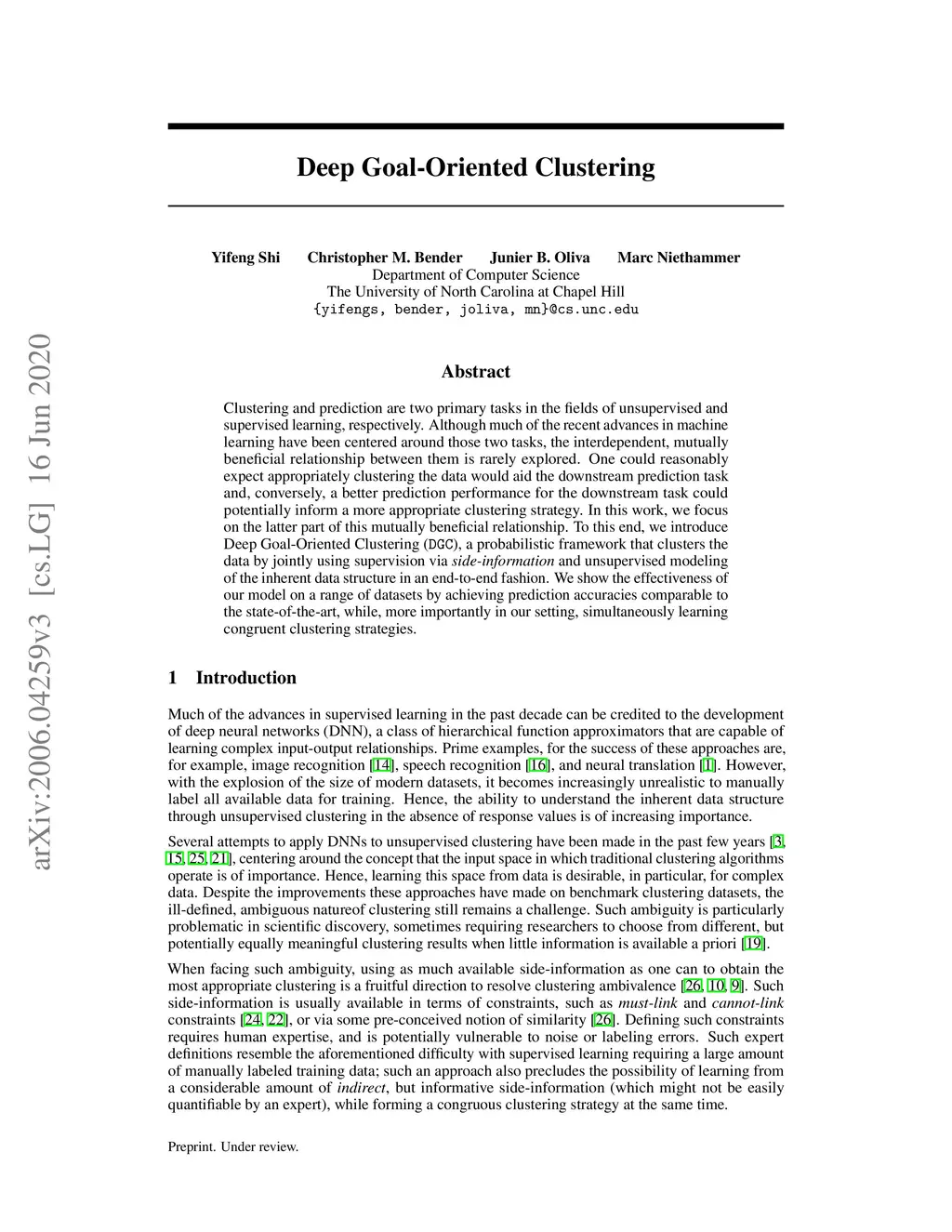 Clustering and prediction are two primary tasks in the fields of unsupervised and supervised learning, respectively. Although much of the recent advances in machine learning have been centered around those two tasks, the interdependent, mutually beneficial relationship between them is rarely explored. One could reasonably expect appropriately clustering the data would aid the downstream prediction task and, conversely, a better prediction performance for the downstream task could potentially inform a more appropriate clustering strategy. In this work, we focus on the latter part of this mutually beneficial relationship. To this end, we introduce Deep Goal-Oriented Clustering (DGC), a probabilistic framework that clusters the data by jointly using supervision via side-information and unsupervised modeling of the inherent data structure in an end-to-end fashion. We show the effectiveness of our model on a range of datasets by achieving prediction accuracies comparable to the state-of-the-art, while, more importantly in our setting, simultaneously learning congruent clustering strategies.