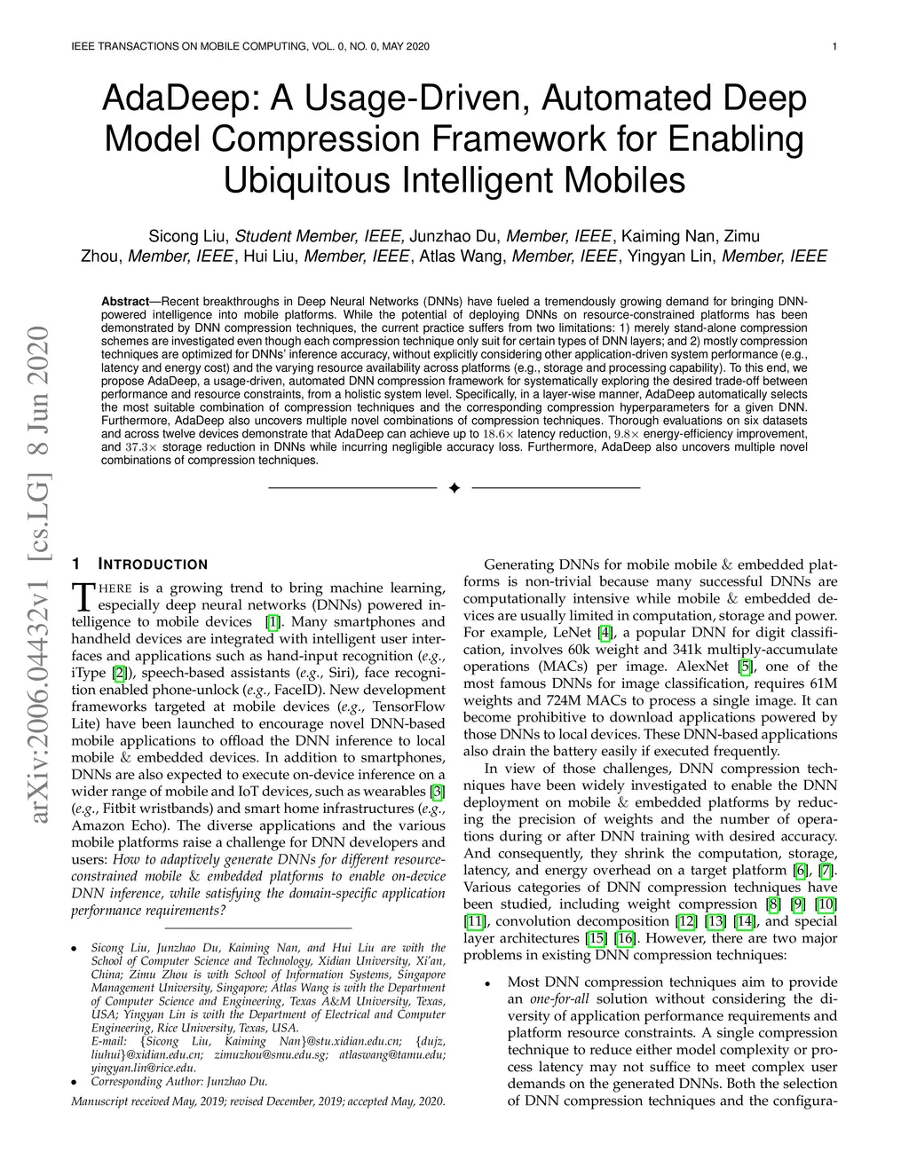 AdaDeep: A Usage-Driven, Automated Deep Model Compression Framework for