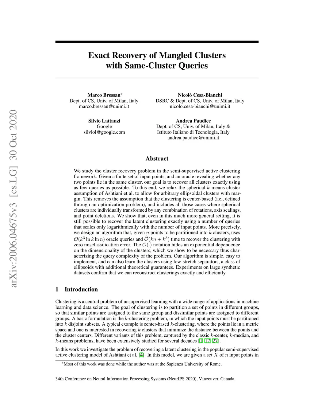 Exact Recovery of Mangled Clusters with Same-Cluster Queries