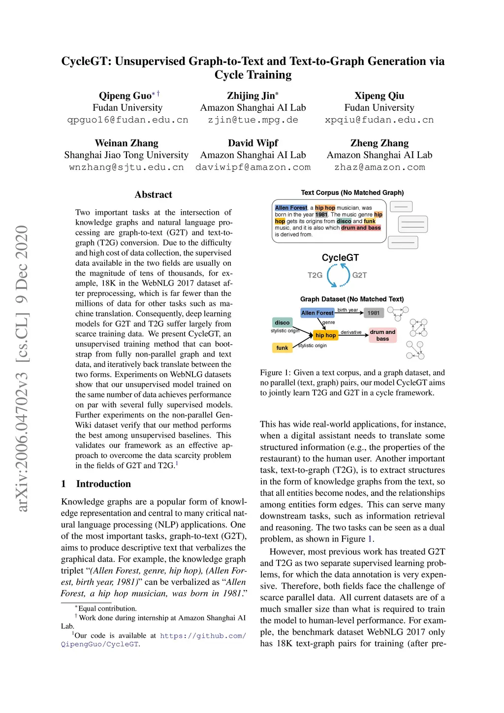 CycleGT: Unsupervised Graph-to-Text and Text-to-Graph Generation via