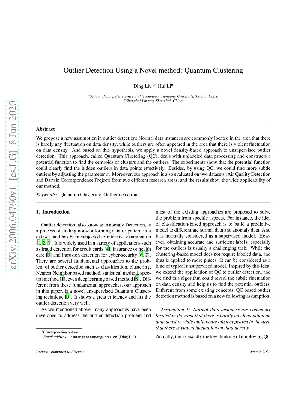 We propose a new assumption in outlier detection: Normal data instances are commonly located in the area that there is hardly any fluctuation on data density, while outliers are often appeared in the area that there is violent fluctuation on data density. And based on this hypothesis, we apply a novel density-based approach to unsupervised outlier detection. This approach, called Quantum Clustering (QC), deals with unlabeled data processing and constructs a potential function to find the centroids of clusters and the outliers. The experiments show that the potential function could clearly find the hidden outliers in data points effectively. Besides, by using QC, we could find more subtle outliers by adjusting the parameter . Moreover, our approach is also evaluated on two datasets (Air Quality Detection and Darwin Correspondence Project) from two different research areas, and the results show the wide applicability of our method.