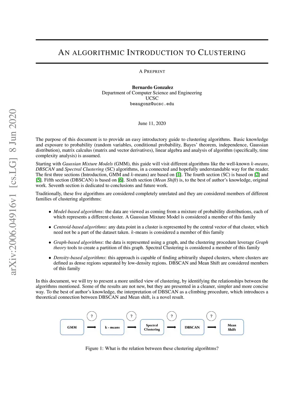 This paper tries to present a more unified view of clustering, by identifying the relationships between five different clustering algorithms. Some of the results are not new, but they are presented in a cleaner, simpler and more concise way. To the best of my knowledge, the interpretation of DBSCAN as a climbing procedure, which introduces a theoretical connection between DBSCAN and Mean shift, is a novel result.