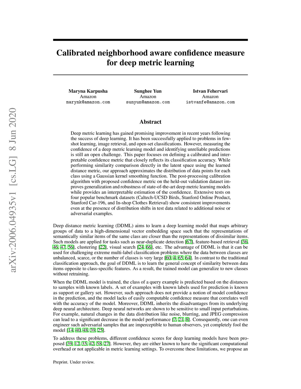 Deep metric learning has gained promising improvement in recent years following the success of deep learning. It has been successfully applied to problems in few-shot learning, image retrieval, and open-set classifications. However, measuring the confidence of a deep metric learning model and identifying unreliable predictions is still an open challenge. This paper focuses on defining a calibrated and interpretable confidence metric that closely reflects its classification accuracy. While performing similarity comparison directly in the latent space using the learned distance metric, our approach approximates the distribution of data points for each class using a Gaussian kernel smoothing function. The post-processing calibration algorithm with proposed confidence metric on the held-out validation dataset improves generalization and robustness of state-of-the-art deep metric learning models while provides an interpretable estimation of the confidence. Extensive tests on four popular benchmark datasets (Caltech-UCSD Birds, Stanford Online Product, Stanford Car-196, and In-shop Clothes Retrieval) show consistent improvements even at the presence of distribution shifts in test data related to additional noise or adversarial examples.