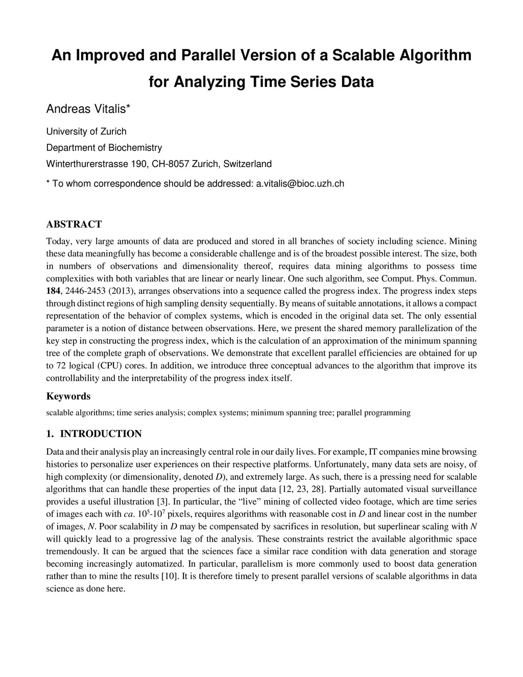 Today, very large amounts of data are produced and stored in all branches of society including science. Mining these data meaningfully has become a considerable challenge and is of the broadest possible interest. The size, both in numbers of observations and dimensionality thereof, requires data mining algorithms to possess time complexities with both variables that are linear or nearly linear. One such algorithm, see Comput. Phys. Commun. 184, 2446-2453 (2013), arranges observations into a sequence called the progress index. The progress index steps through distinct regions of high sampling density sequentially. By means of suitable annotations, it allows a compact representation of the behavior of complex systems, which is encoded in the original data set. The only essential parameter is a notion of distance between observations. Here, we present the shared memory parallelization of the key step in constructing the progress index, which is the calculation of an approximation of the minimum spanning tree of the complete graph of observations. We demonstrate that excellent parallel efficiencies are obtained for up to 72 logical (CPU) cores. In addition, we introduce three conceptual advances to the algorithm that improve its controllability and the interpretability of the progress index itself.