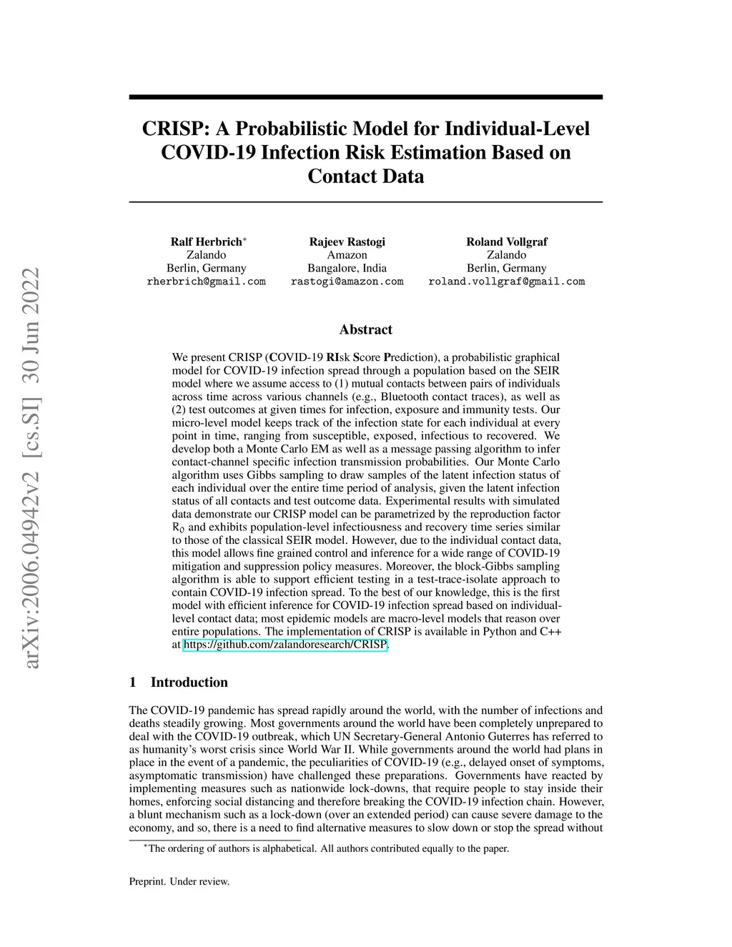 CRISP: A Probabilistic Model for Individual-Level COVID-19 Infection