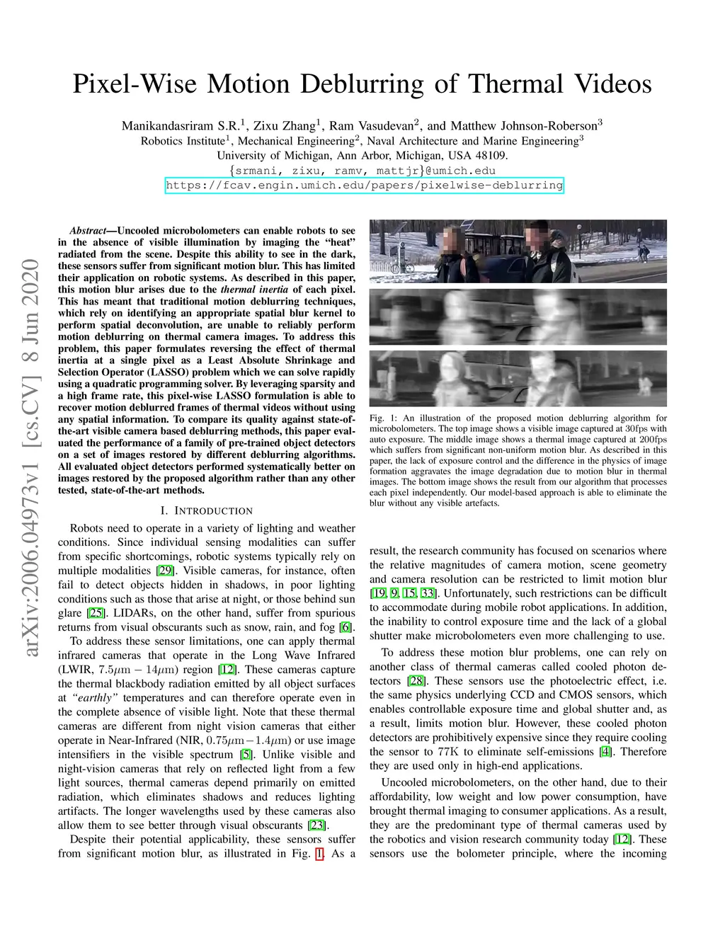 Pixel-Wise Motion Deblurring of Thermal Videos