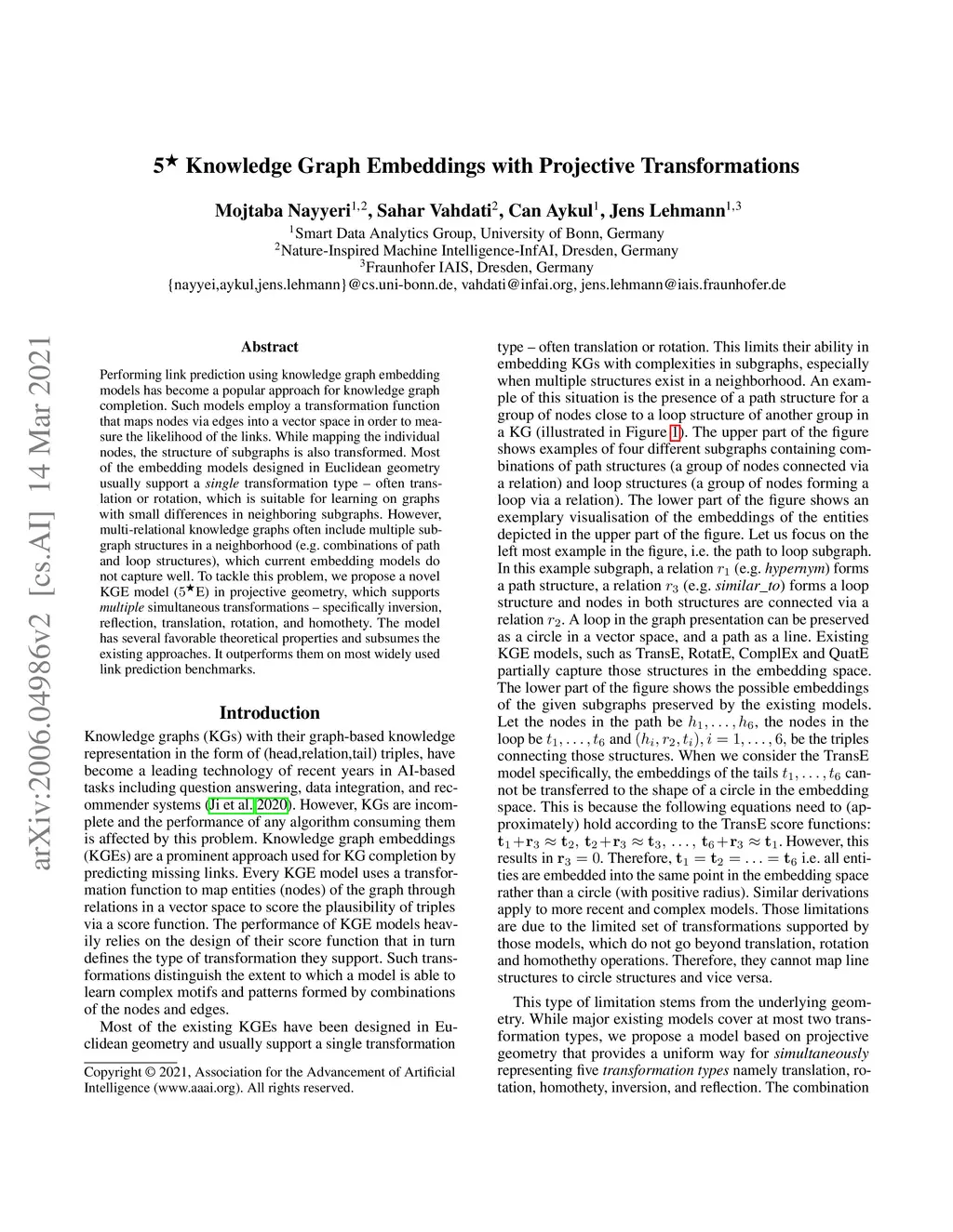 5* Knowledge Graph Embeddings with Projective Transformations