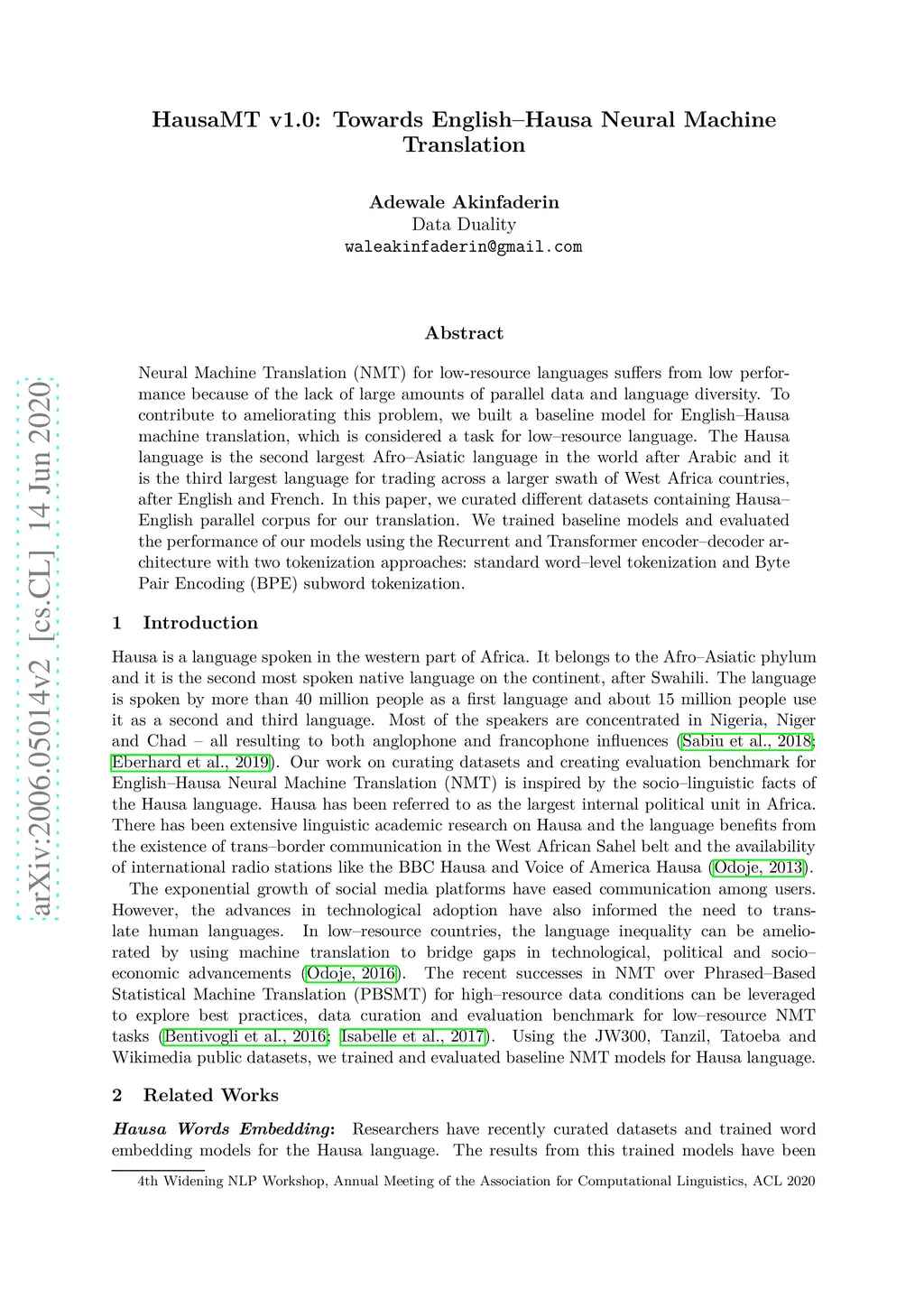 HausaMT v1.0: Towards English-Hausa Neural Machine Translation