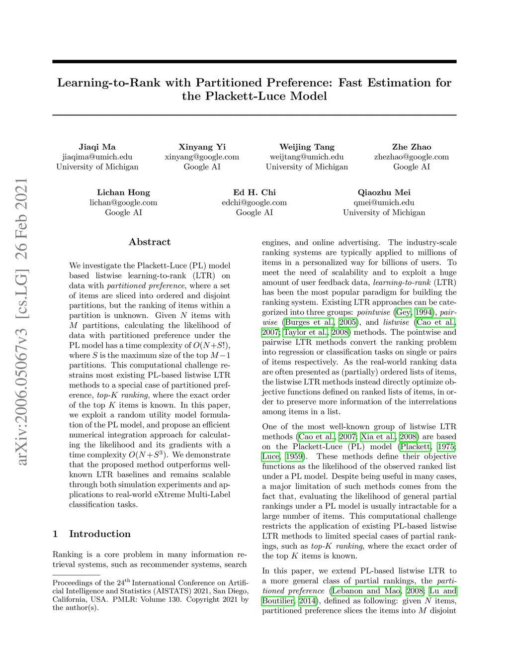 Learning-to-Rank with Partitioned Preference: Fast Estimation for the
