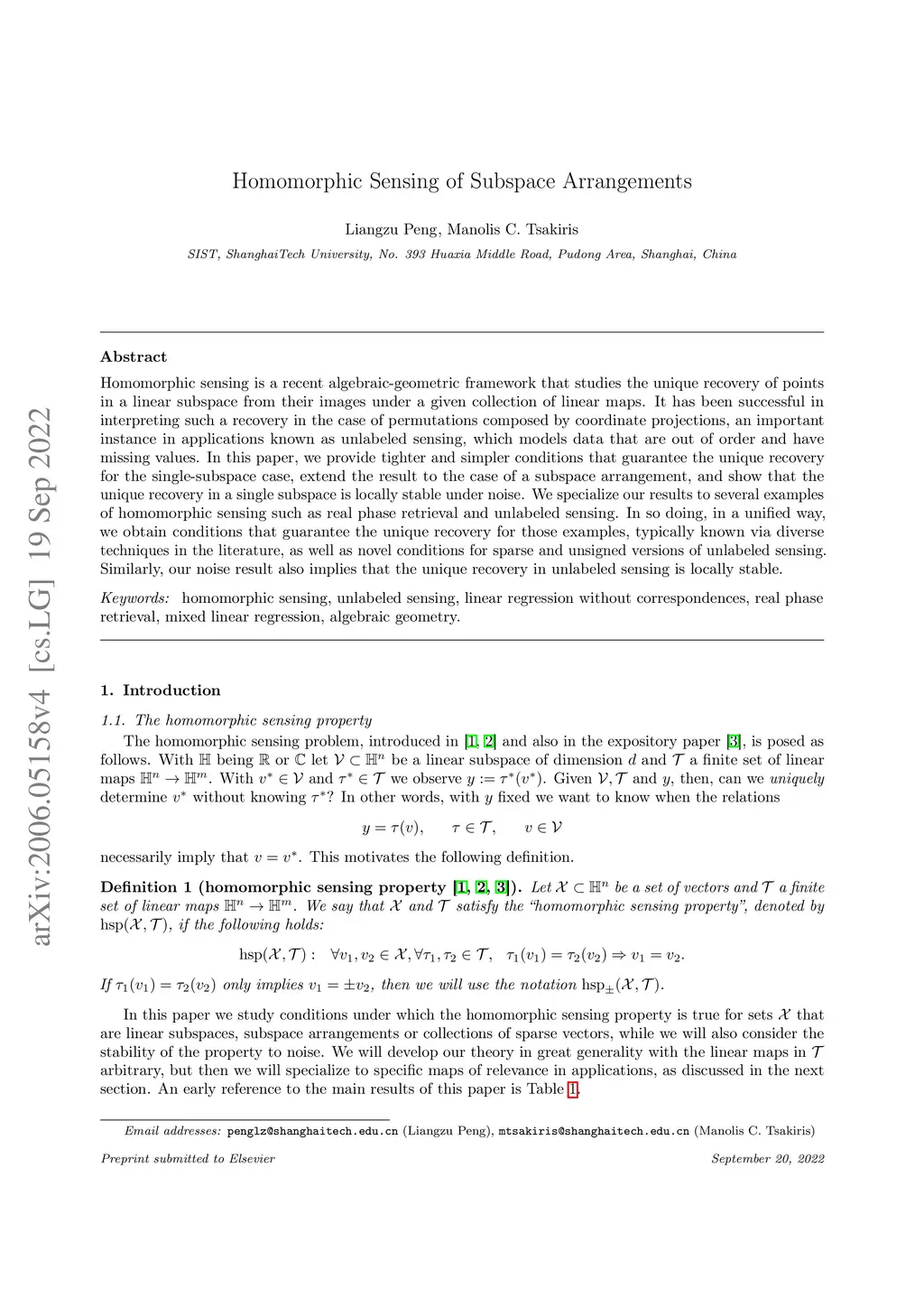 Homomorphic sensing is a recent algebraic-geometric framework that studies the unique recovery of points in a linear subspace from their images under a given collection of linear maps. It has been successful in interpreting such a recovery in the case of permutations composed by coordinate projections, an important instance in applications known as unlabeled sensing, which models data that are out of order and have missing values. In this paper, we provide tighter and simpler conditions that guarantee the unique recovery for the single-subspace case, extend the result to the case of a subspace arrangement, and show that the unique recovery in a single subspace is locally stable under noise. We specialize our results to several examples of homomorphic sensing such as real phase retrieval and unlabeled sensing. In so doing, in a unified way, we obtain conditions that guarantee the unique recovery for those examples, typically known via diverse techniques in the literature, as well as novel conditions for sparse and unsigned versions of unlabeled sensing. Similarly, our noise result also implies that the unique recovery in unlabeled sensing is locally stable.