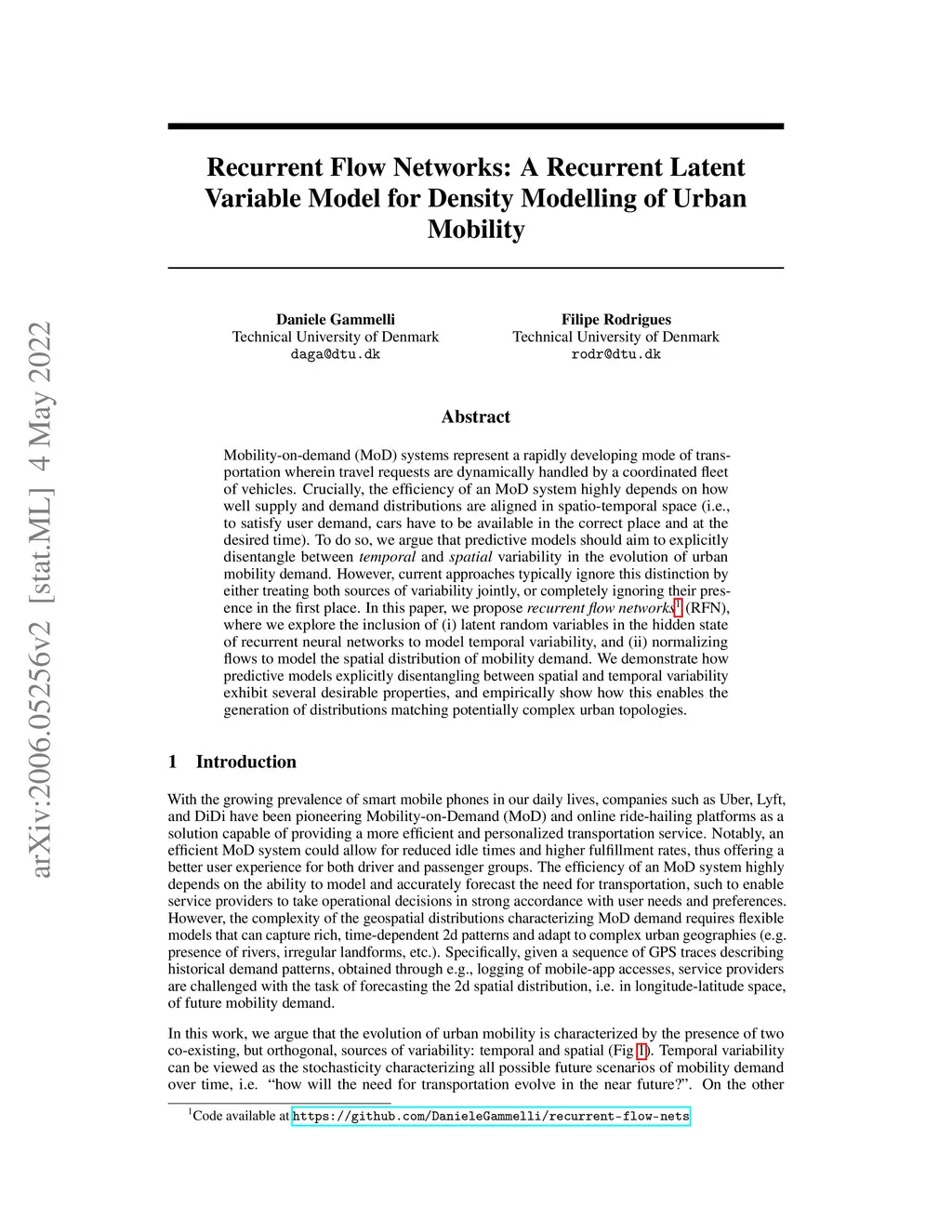 Mobility-on-demand (MoD) systems represent a rapidly developing mode of transportation wherein travel requests are dynamically handled by a coordinated fleet of vehicles. Crucially, the efficiency of an MoD system highly depends on how well supply and demand distributions are aligned in spatio-temporal space (i.e., to satisfy user demand, cars have to be available in the correct place and at the desired time). To do so, we argue that predictive models should aim to explicitly disentangle between temporal} and spatial variability in the evolution of urban mobility demand. However, current approaches typically ignore this distinction by either treating both sources of variability jointly, or completely ignoring their presence in the first place. In this paper, we propose recurrent flow networks (RFN), where we explore the inclusion of (i) latent random variables in the hidden state of recurrent neural networks to model temporal variability, and (ii) normalizing flows to model the spatial distribution of mobility demand. We demonstrate how predictive models explicitly disentangling between spatial and temporal variability exhibit several desirable properties, and empirically show how this enables the generation of distributions matching potentially complex urban topologies.