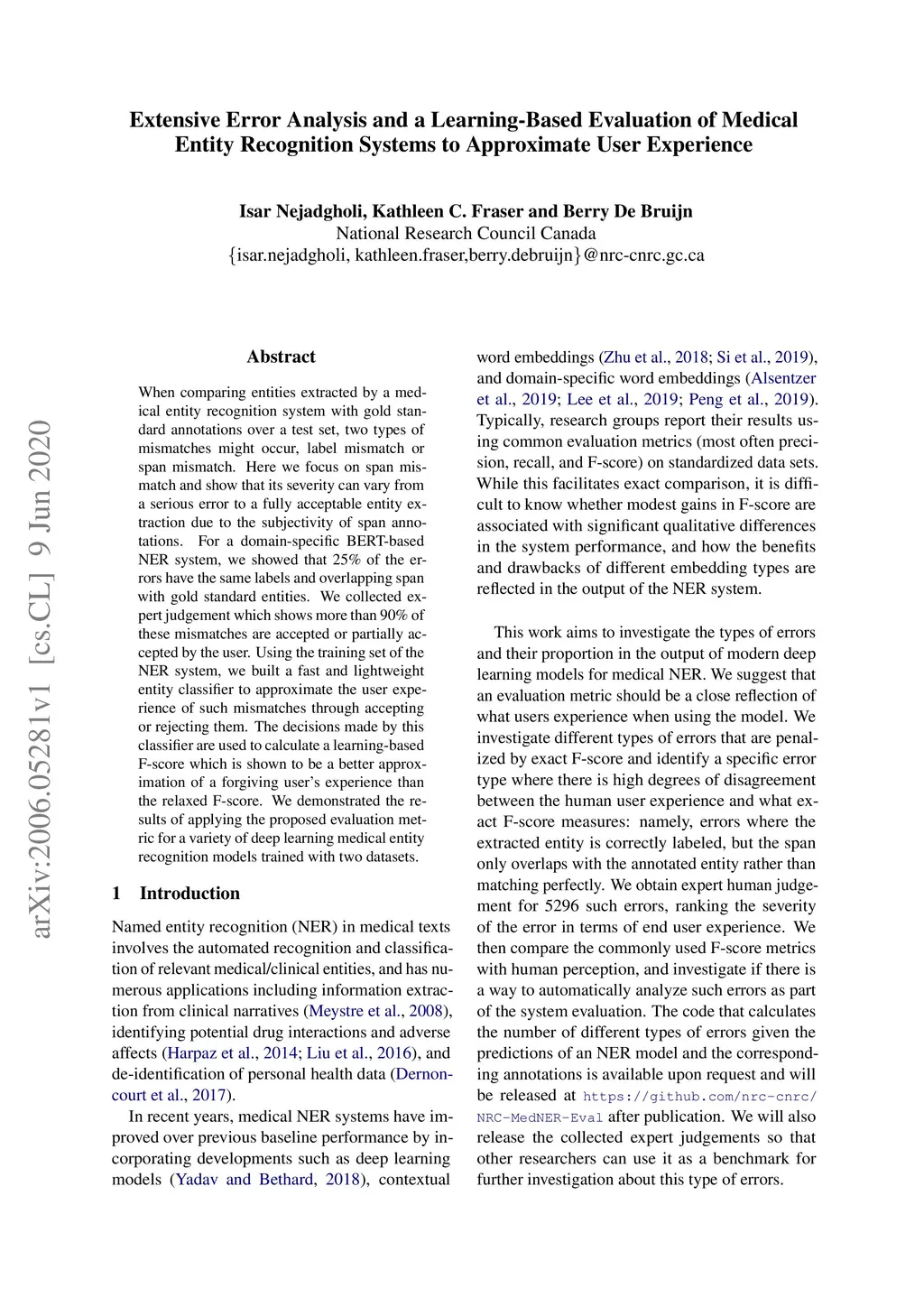 Extensive Error Analysis and a Learning-Based Evaluation of Medical