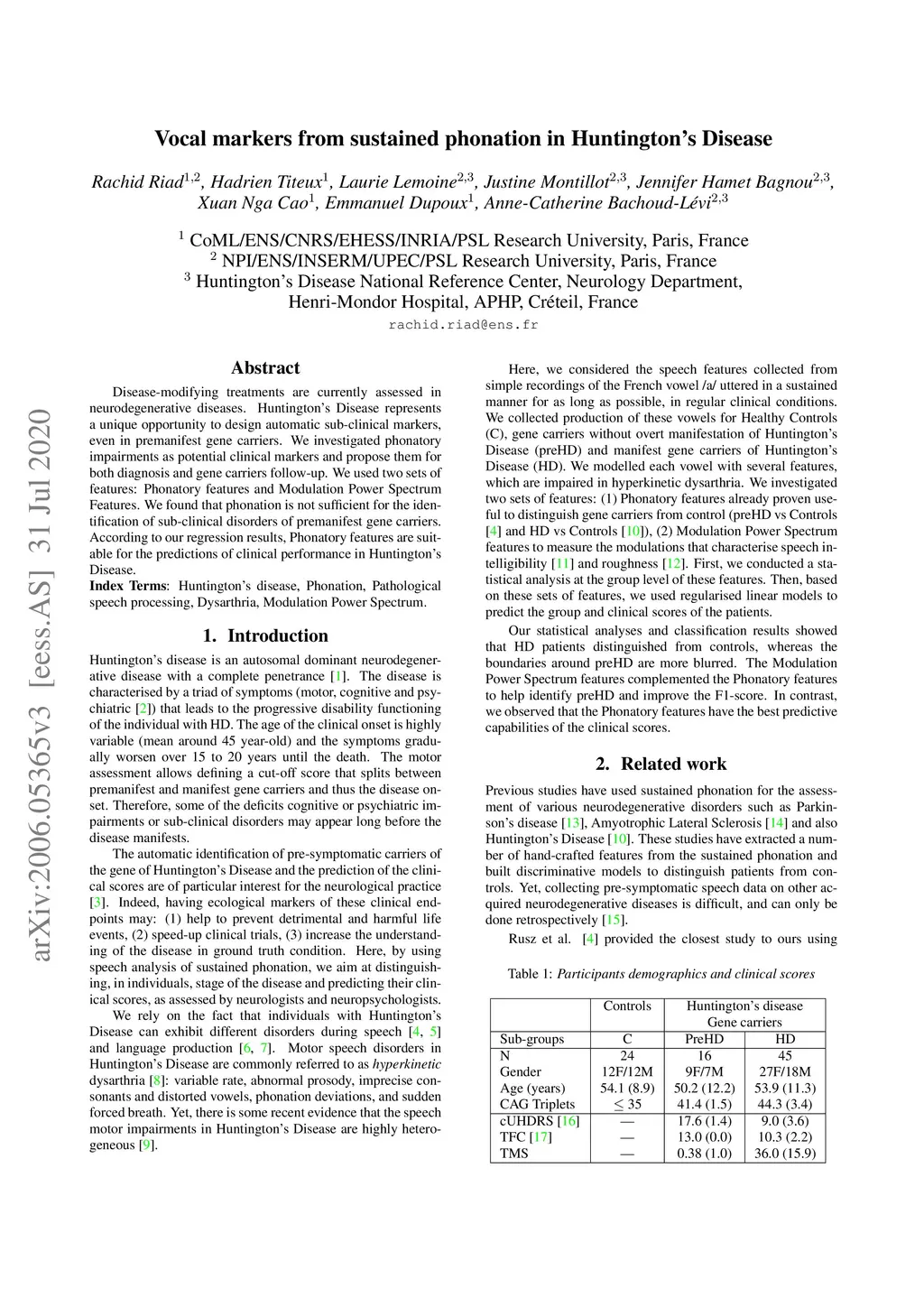 Disease-modifying treatments are currently assessed in neurodegenerative diseases. Huntington's Disease represents a unique opportunity to design automatic sub-clinical markers, even in premanifest gene carriers. We investigated phonatory impairments as potential clinical markers and propose them for both diagnosis and gene carriers follow-up. We used two sets of features: Phonatory features and Modulation Power Spectrum Features. We found that phonation is not sufficient for the identification of sub-clinical disorders of premanifest gene carriers. According to our regression results, Phonatory features are suitable for the predictions of clinical performance in Huntington's Disease.