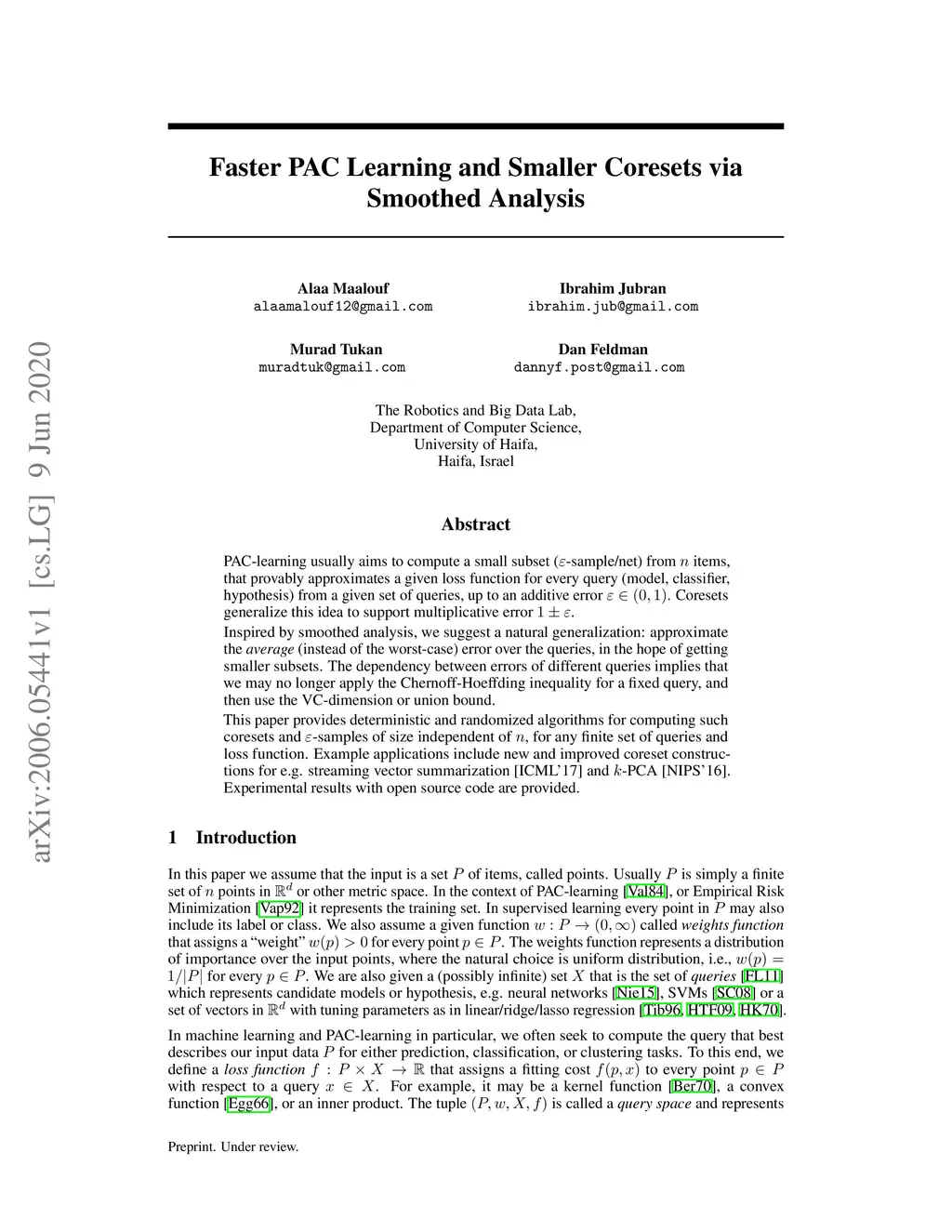 PAC-learning usually aims to compute a small subset (-sample/net) from items, that provably approximates a given loss function for every query (model, classifier, hypothesis) from a given set of queries, up to an additive error . Coresets generalize this idea to support multiplicative error . Inspired by smoothed analysis, we suggest a natural generalization: approximate the \emph{average} (instead of the worst-case) error over the queries, in the hope of getting smaller subsets. The dependency between errors of different queries implies that we may no longer apply the Chernoff-Hoeffding inequality for a fixed query, and then use the VC-dimension or union bound. This paper provides deterministic and randomized algorithms for computing such coresets and -samples of size independent of , for any finite set of queries and loss function. Example applications include new and improved coreset constructions for e.g. streaming vector summarization [ICML'17] and -PCA [NIPS'16]. Experimental results with open source code are provided.