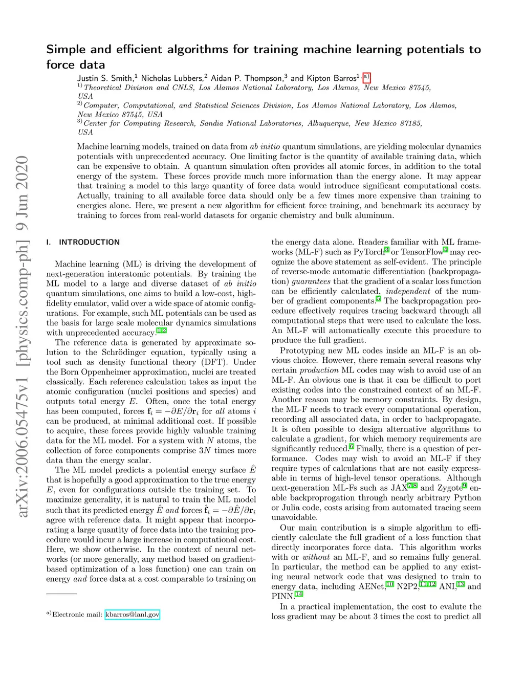 Abstract Machine learning models, trained on data from ab initio quantum simulations, are yielding molecular dynamics potentials with unprecedented accuracy. One limiting factor is the quantity of available training data, which can be expensive to obtain. A quantum simulation often provides all atomic forces, in addition to the total energy of the system. These forces provide much more information than the energy alone. It may appear that training a model to this large quantity of force data would introduce significant computational costs. Actually, training to all available force data should only be a few times more expensive than training to energies alone. Here, we present a new algorithm for efficient force training, and benchmark its accuracy by training to forces from real-world datasets for organic chemistry and bulk aluminum.