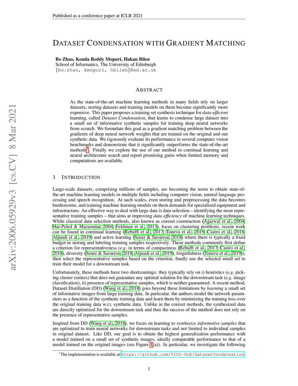 Dataset Condensation with Gradient Matching