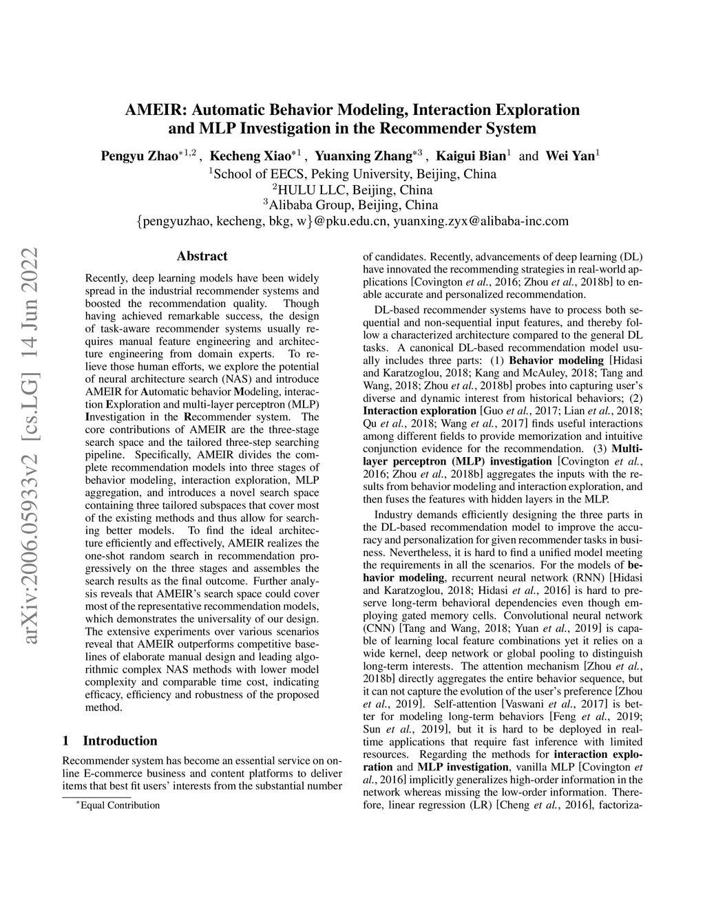 AMEIR: Automatic Behavior Modeling, Interaction Exploration and MLP