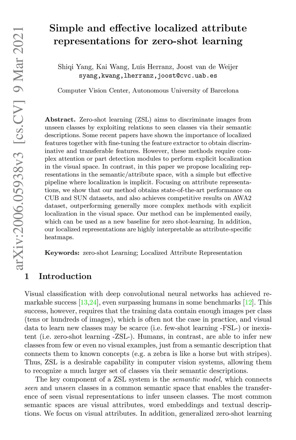 Simple and effective localized attribute representations for zero-shot