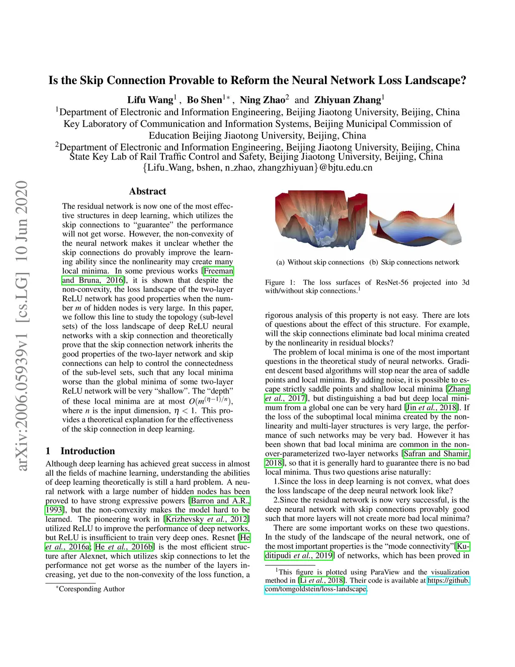 Is the Skip Connection Provable to Reform the Neural Network Loss