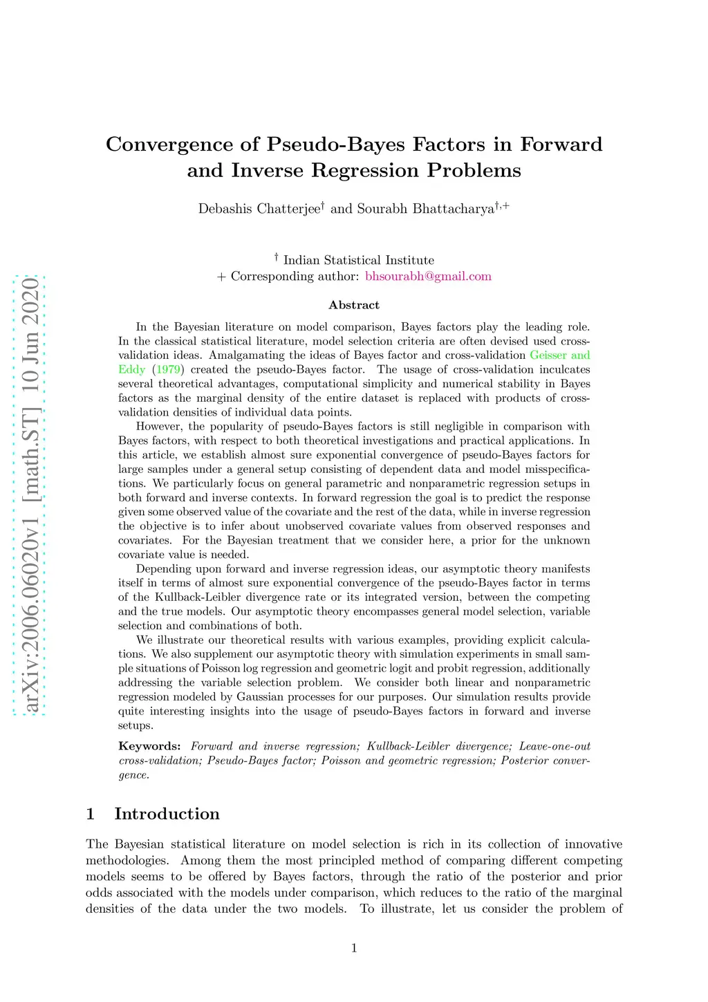 Convergence of Pseudo-Bayes Factors in Forward and Inverse Regression