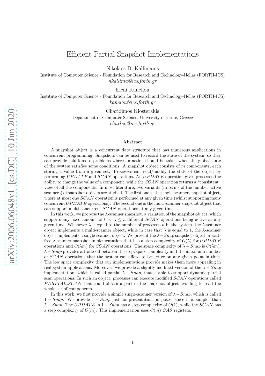 In this work, we propose the -scanner snapshot, a variation of the snapshot object, which supports any fixed amount of different operations being active at any given time. Whenever is equal to the number of processes in the system, the -scanner object implements a multi-scanner object, while in case that is equal to , the -scanner object implements a single-scanner object. We present the snapshot object, a wait-free -scanner snapshot implementation that has a step complexity of for operations and for operations. The space complexity of is . provides a trade-off between the step/space complexity and the maximum number of operations that the system can afford to be active on any given point in time. The low space complexity that our implementations provide makes them more appealing in real system applications. Moreover, we provide a slightly modified version of the implementation, which is called partial , that is able to support dynamic partial scan operations. In such an object, processes can execute modified operations called that could obtain a part of the snapshot object avoiding to read the whole set of components. In this work, we first provide a simple single-scanner version of , which is called . We provide just for presentation purposes, since it is simpler than . The in has a step complexity of , while the has a step complexity of . This implementation uses registers.