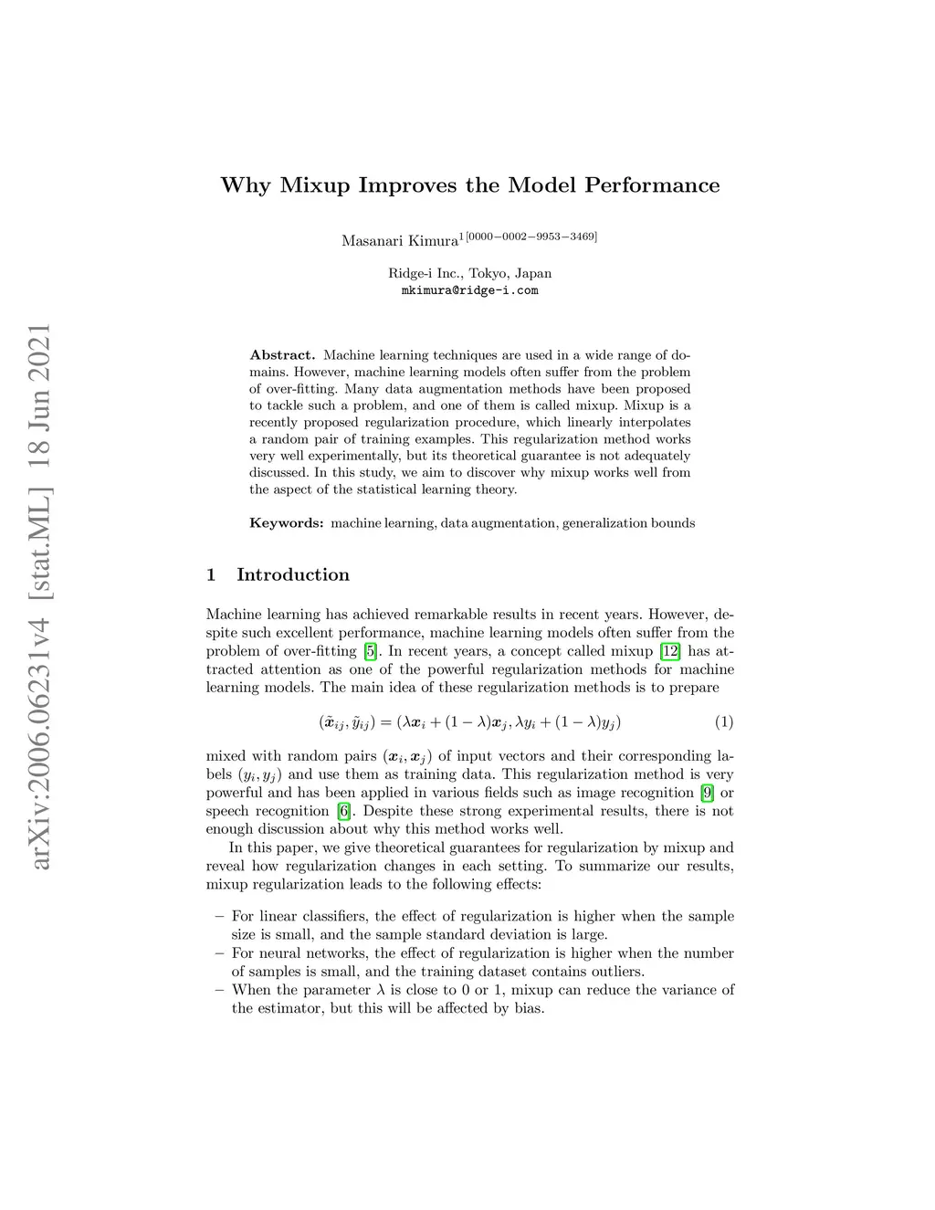 Machine learning has achieved remarkable results in recent years due to the increase in the number of data and the development of computational resources. However, despite such excellent performance, machine learning models often suffer from the problem of over-fitting. Many data augmentation methods have been proposed to tackle such a problem, and one of them is called Mixup. Mixup is a recently proposed regularization procedure, which linearly interpolates a random pair of training examples. This regularization method works very well experimentally, but its theoretical guarantee is not fully discussed. In this study, we aim to find out why Mixup works well from the aspect of computational learning theory. In addition, we reveal how the effect of Mixup changes in each situation. Furthermore, we also investigated the effects of changes in the Mixup's parameter. This contributes to the search for the optimal parameters and to estimate the effects of the parameters currently used. The results of this study provide a theoretical clarification of when and how effective regularization by Mixup is.