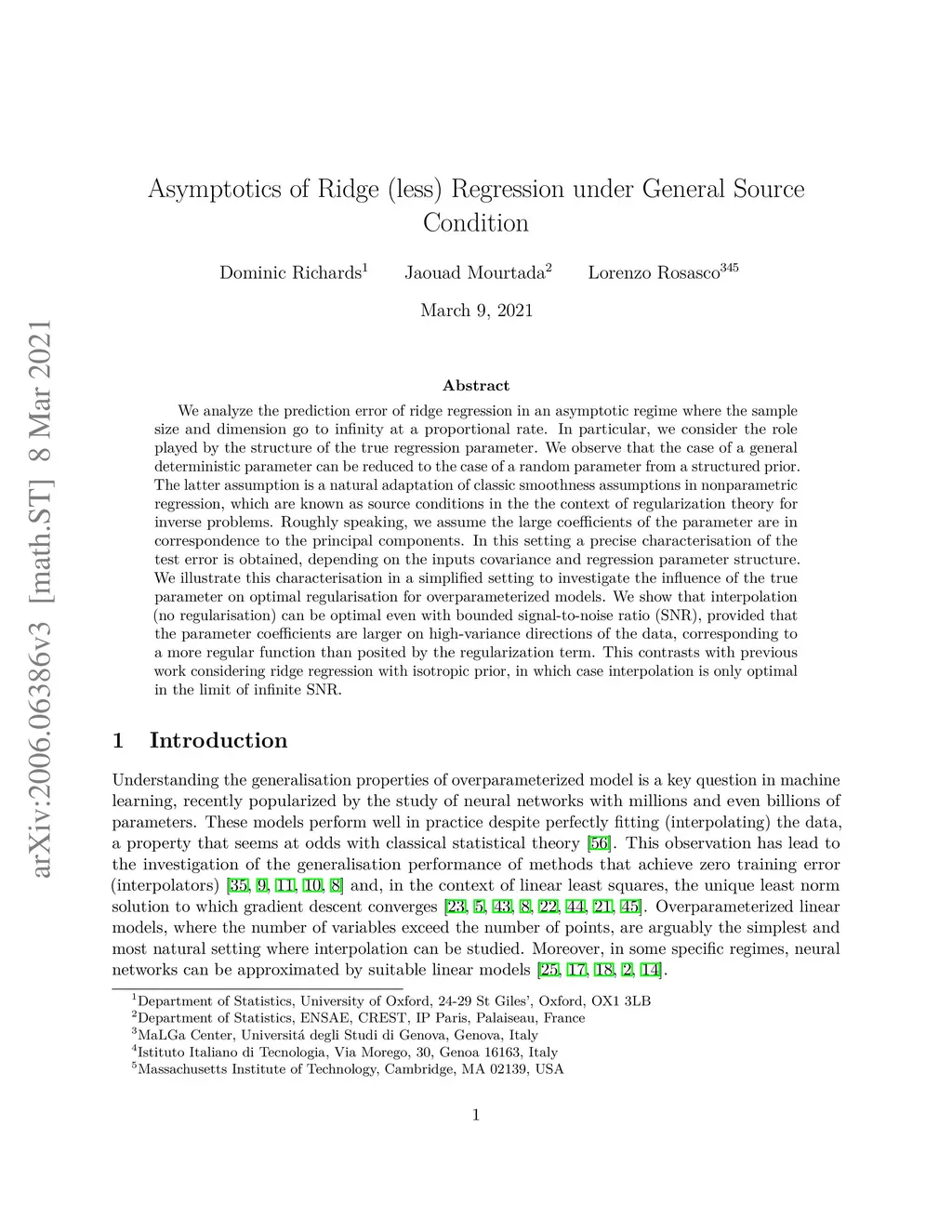 Asymptotics of Ridge (less) Regression under General Source Condition