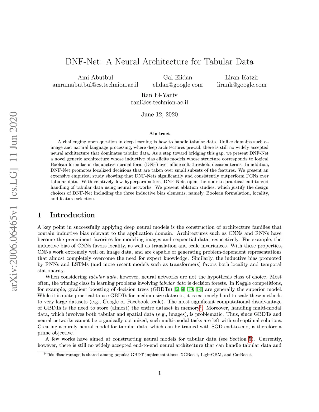 A challenging open question in deep learning is how to handle tabular data. Unlike domains such as image and natural language processing, where deep architectures prevail, there is still no widely accepted neural architecture that dominates tabular data. As a step toward bridging this gap, we present DNF-Net a novel generic architecture whose inductive bias elicits models whose structure corresponds to logical Boolean formulas in disjunctive normal form (DNF) over affine soft-threshold decision terms. In addition, DNF-Net promotes localized decisions that are taken over small subsets of the features. We present an extensive empirical study showing that DNF-Nets significantly and consistently outperform FCNs over tabular data. With relatively few hyperparameters, DNF-Nets open the door to practical end-to-end handling of tabular data using neural networks. We present ablation studies, which justify the design choices of DNF-Net including the three inductive bias elements, namely, Boolean formulation, locality, and feature selection.