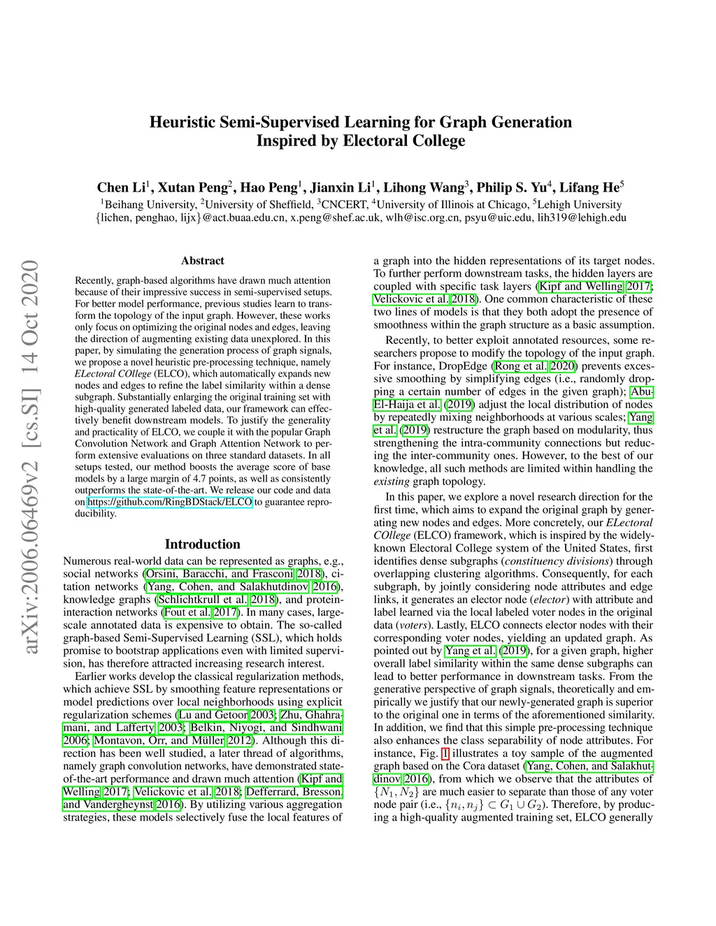 Recently, graph-based algorithms have drawn much attention because of their impressive success in semi-supervised scenarios. For better model performance, previous studies learn to transform the topology of the input graph. However, these works only focus on optimizing the original nodes and edges, leaving the direction of augmenting existing data unexplored. In this paper, by simulating the generation process of graph signals, we propose a novel heuristic pre-processing technique, namely ELectoral COllege (ELCO), which automatically expands new nodes and edges to refine the label similarity within a dense subgraph. Substantially enlarging the original training set with high-quality generated labeled data, our framework can effectively benefit downstream models. To justify the generality and practicality of ELCO, we couple it with the popular Graph Convolution Network and Graph Attention Network to extensively perform semi-supervised learning evaluations on three standard datasets. In all setups tested, our method boosts the average score of base models by a large margin of 4 points, as well as consistently outperforms the state-of-the-art. Please find our code at https://github.com/RingBDStack/ELCO.