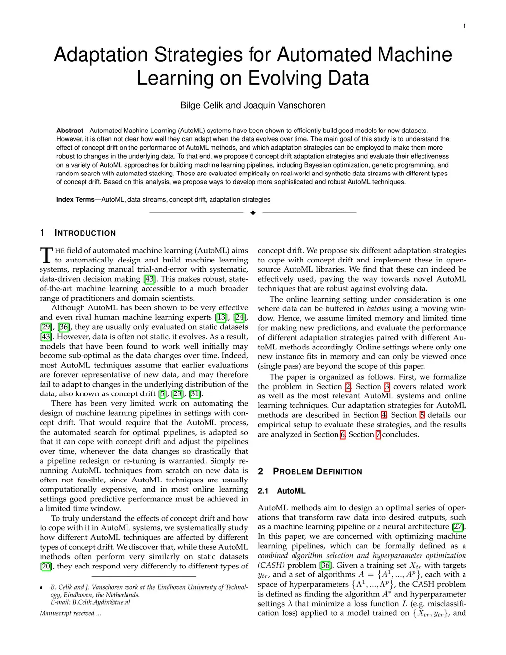 Automated Machine Learning (AutoML) systems have been shown to efficiently build good models for new datasets. However, it is often not clear how well they can adapt when the data evolves over time. The main goal of this study is to understand the effect of data stream challenges such as concept drift on the performance of AutoML methods, and which adaptation strategies can be employed to make them more robust. To that end, we propose 6 concept drift adaptation strategies and evaluate their effectiveness on different AutoML approaches. We do this for a variety of AutoML approaches for building machine learning pipelines, including those that leverage Bayesian optimization, genetic programming, and random search with automated stacking. These are evaluated empirically on real-world and synthetic data streams with different types of concept drift. Based on this analysis, we propose ways to develop more sophisticated and robust AutoML techniques.