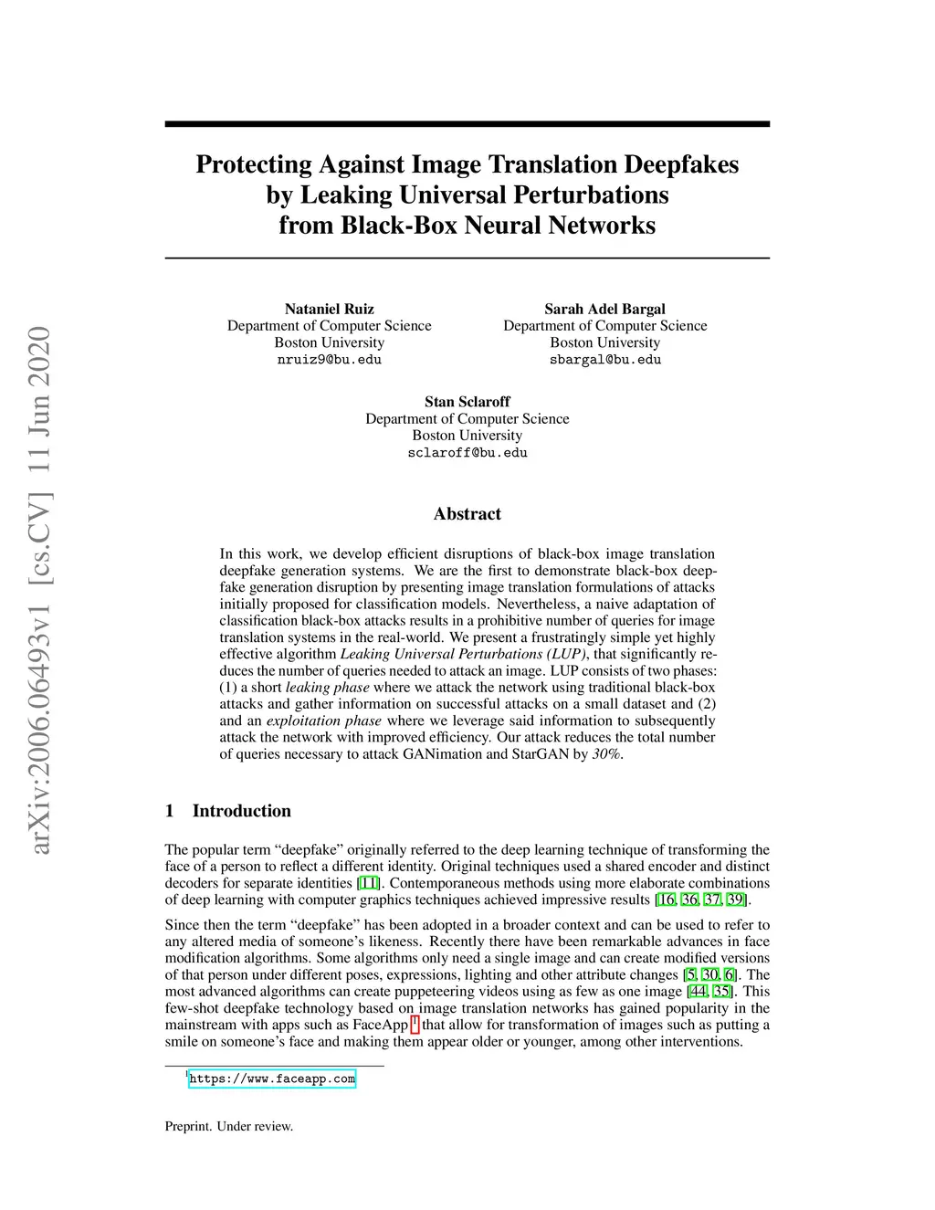 In this work, we develop efficient disruptions of black-box image translation deepfake generation systems. We are the first to demonstrate black-box deepfake generation disruption by presenting image translation formulations of attacks initially proposed for classification models. Nevertheless, a naive adaptation of classification black-box attacks results in a prohibitive number of queries for image translation systems in the real-world. We present a frustratingly simple yet highly effective algorithm Leaking Universal Perturbations (LUP), that significantly reduces the number of queries needed to attack an image. LUP consists of two phases: (1) a short leaking phase where we attack the network using traditional black-box attacks and gather information on successful attacks on a small dataset and (2) and an exploitation phase where we leverage said information to subsequently attack the network with improved efficiency. Our attack reduces the total number of queries necessary to attack GANimation and StarGAN by 30%.
