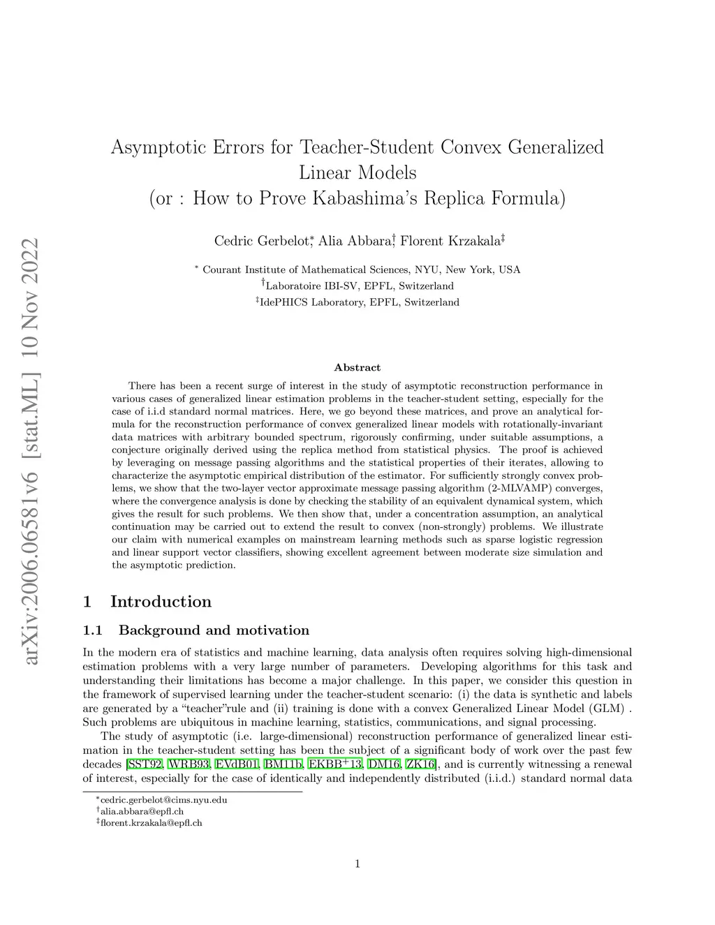Asymptotic Errors for Teacher-Student Convex Generalized Linear Models