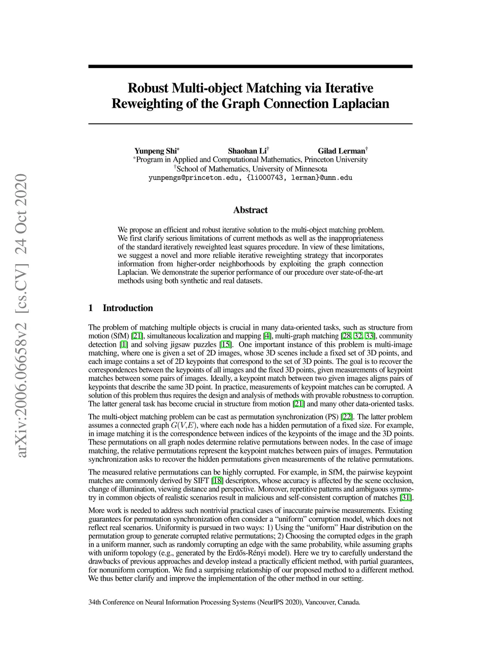 We propose an efficient and robust iterative solution to the multi-object matching problem. We first clarify serious limitations of current methods as well as the inappropriateness of the standard iteratively reweighted least squares procedure. In view of these limitations, we suggest a novel and more reliable iterative reweighting strategy that incorporates information from higher-order neighborhoods by exploiting the graph connection Laplacian. We demonstrate the superior performance of our procedure over state-of-the-art methods using both synthetic and real datasets.