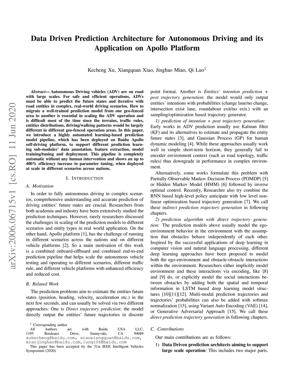 Data Driven Prediction Architecture for Autonomous Driving and its
