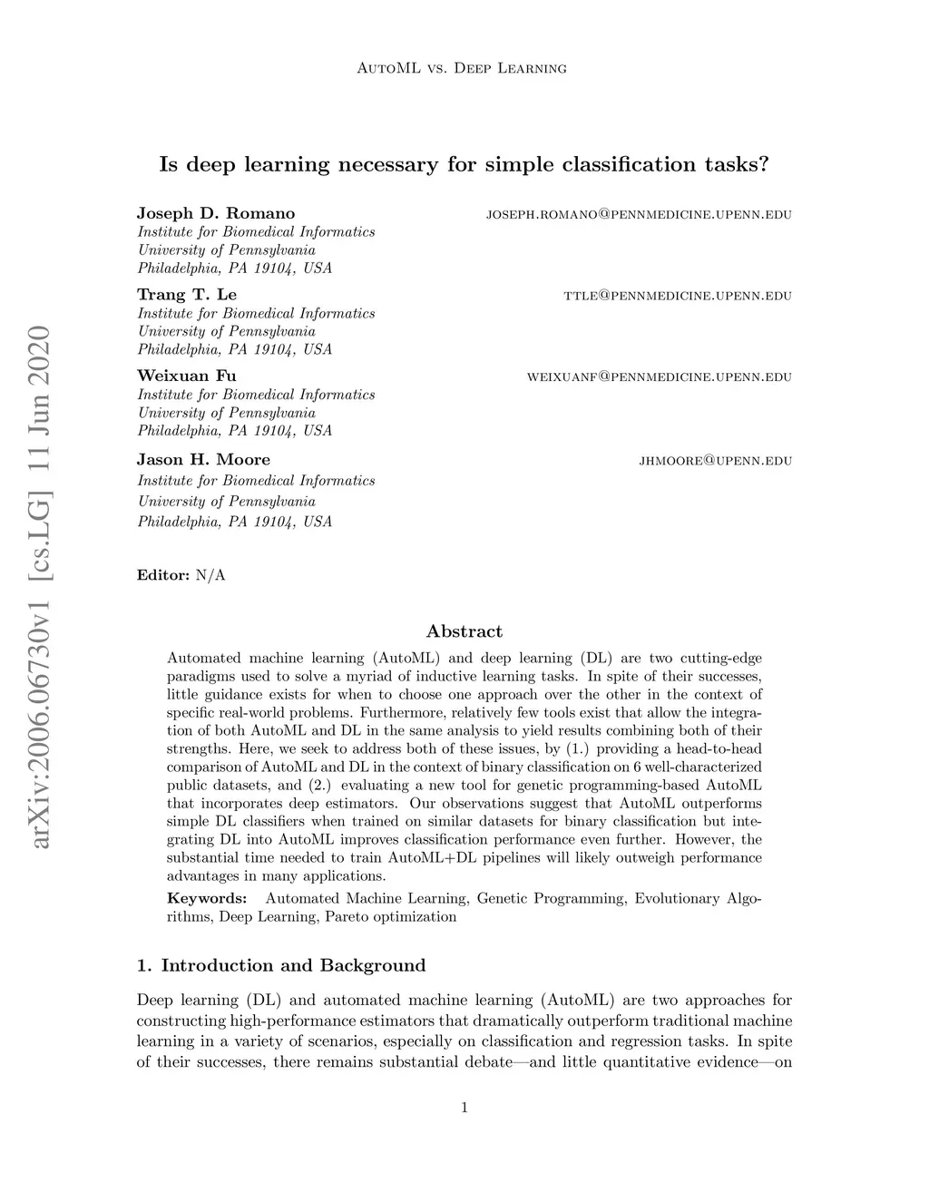 Is deep learning necessary for simple classification tasks?