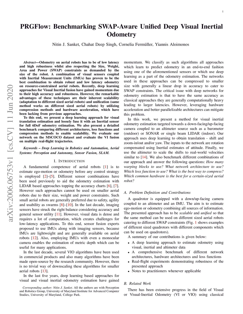 PRGFlow: Benchmarking SWAP-Aware Unified Deep Visual Inertial Odometry