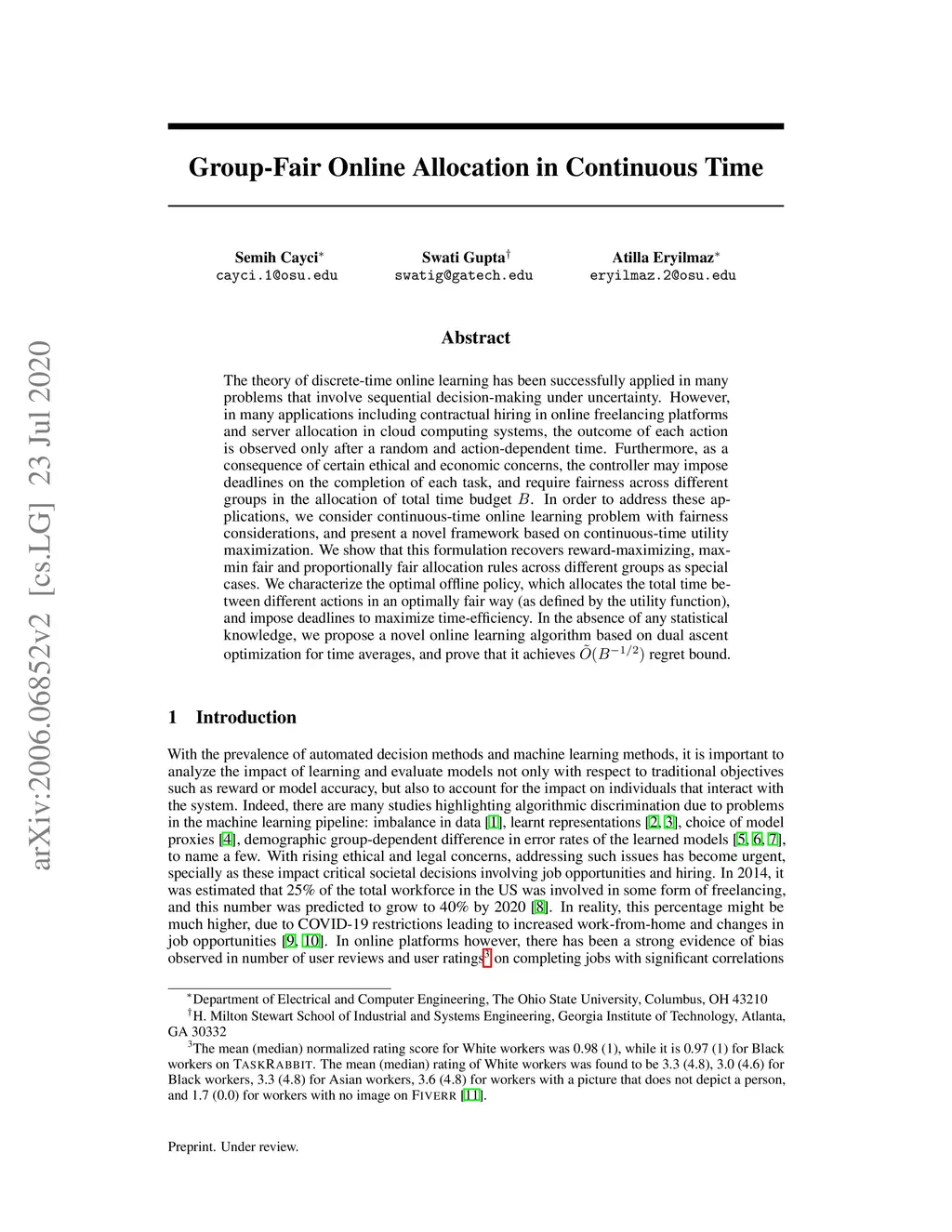 Group-Fair Online Allocation in Continuous Time
