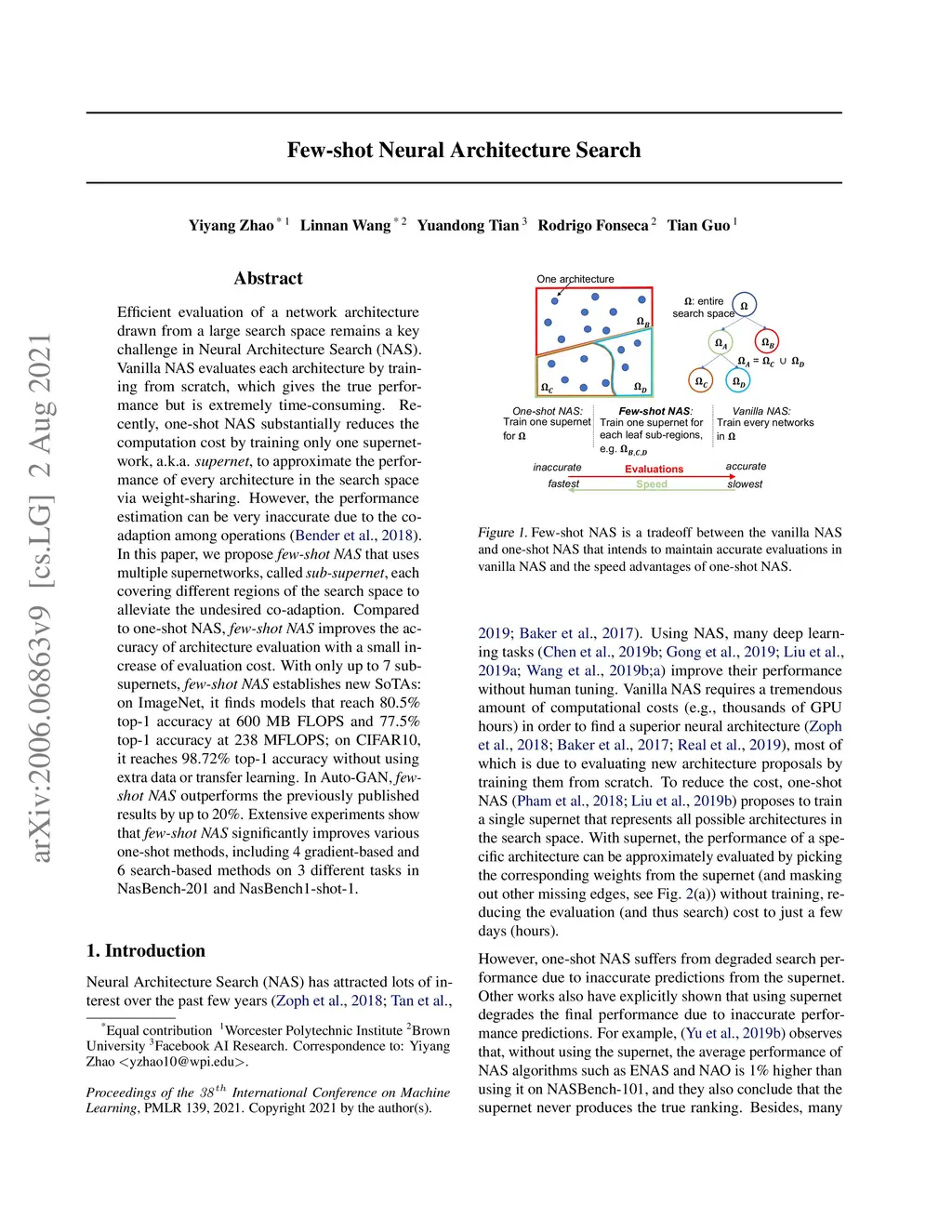 Few-shot Neural Architecture Search